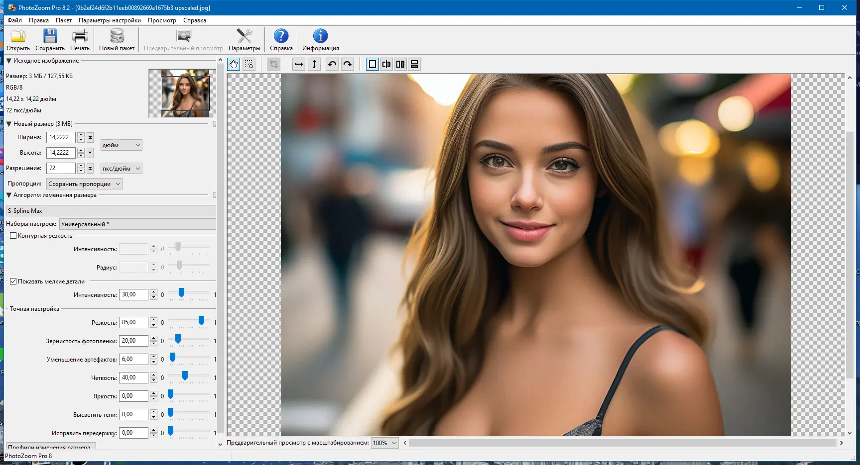 - Использование уникального алгоритма S-Spline Max для точного увеличения