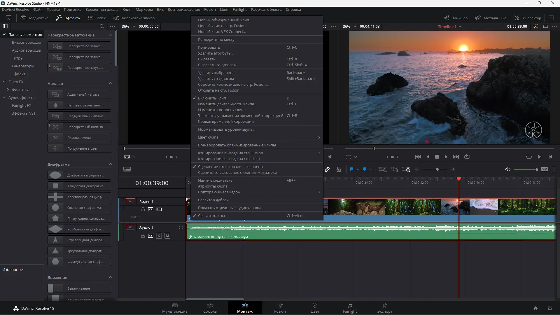 Работа с DaVinci Resolve начинается с выбора рабочего пространства — страницы «Монтаж», «Цвет», «Fusion» или «Fairlight». Каждое из них предлагает специализированные инструменты, адаптированные под конкретные задачи. Например, на странице «Монтаж» можно организовать медиафайлы, использовать библиотеки переходов и титров, выполнять нелинейное редактирование. Страница «Fusion» предназначена для создания сложных визуальных эффектов с помощью узловой системы композиций. Работа со звуком осуществляется в Fairlight, где доступна обработка нескольких сотен треков с применением эквалайзеров, ревербераций и шумоподавления. Все изменения синхронизируются в реальном времени, а переход между разделами происходит без потерь качества или необходимости повторного импорта. Для ускорения процесса предусмотрены горячие клавиши, автоматическая сортировка по метаданным и инструменты ИИ.
