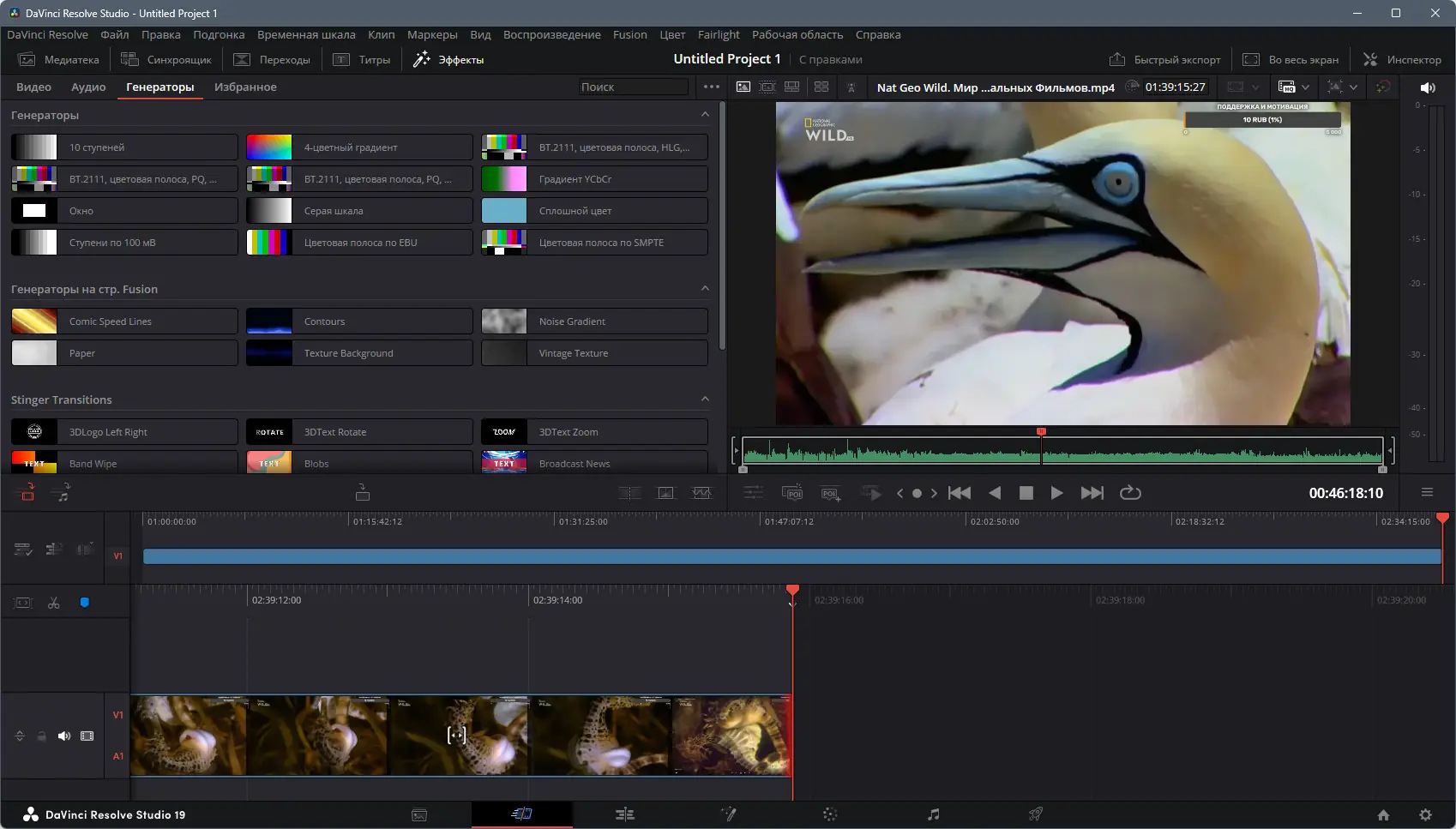 - Наличие страницы Fusion для создания визуальных эффектов и анимации