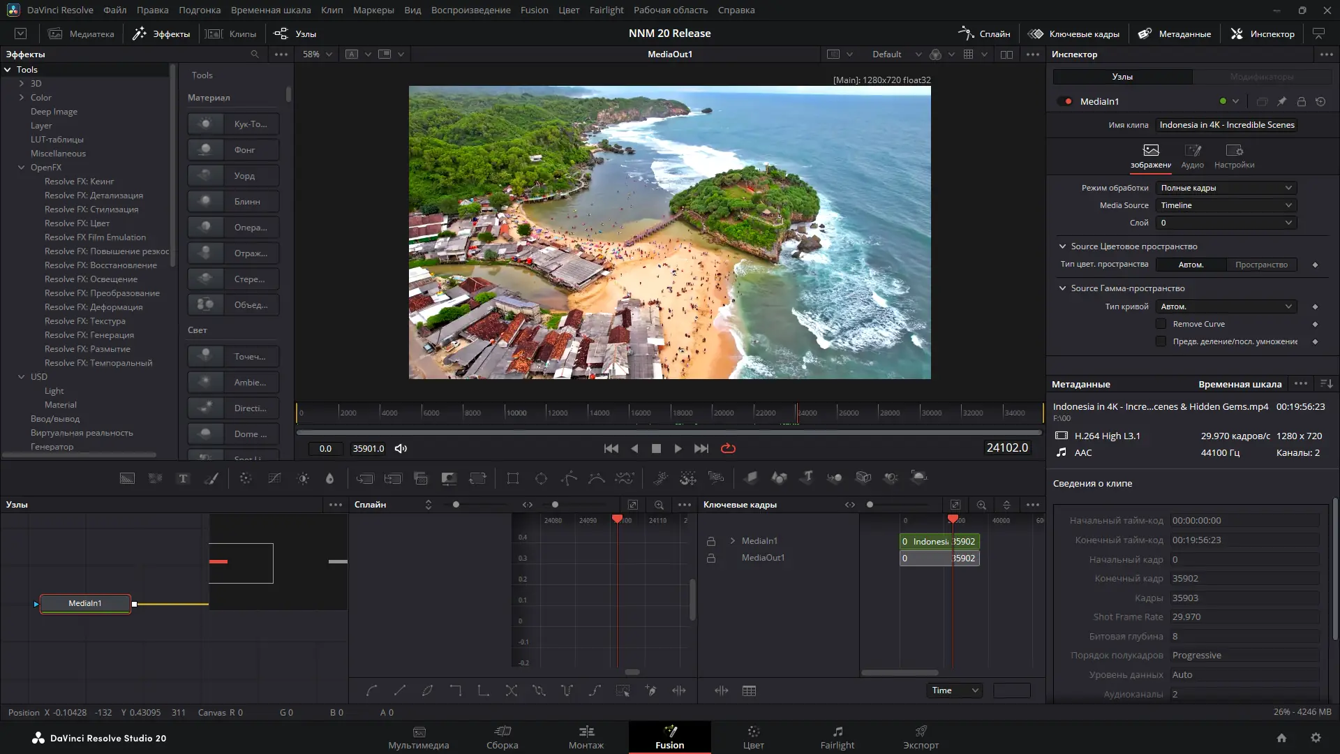 - Интеграция визуальных эффектов через страницу Fusion на базе узлов