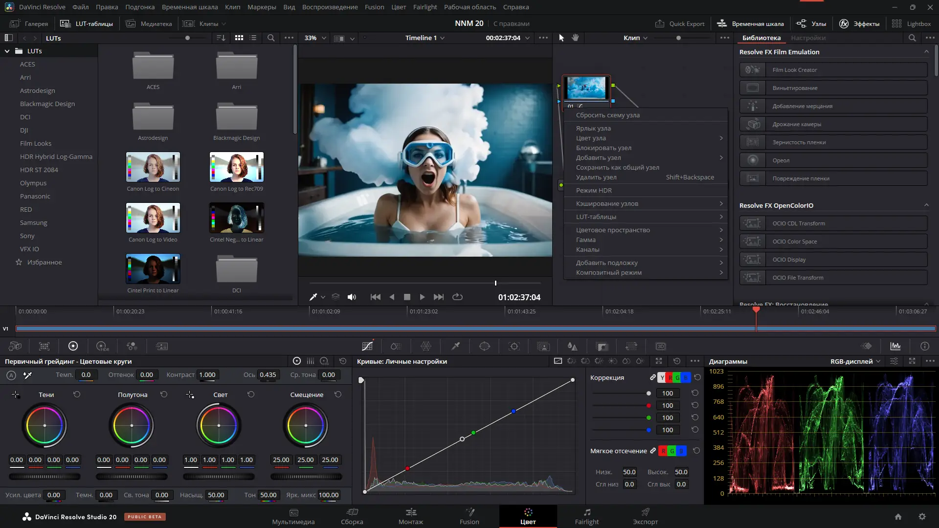 DaVinci Resolve сочетает в себе высокую производительность, широкий функционал и гибкость настройки. Программа поддерживает совместную работу в режиме реального времени, что особенно ценно для крупных команд. Встроенные AI-инструменты, такие как AI IntelliCut, AI Dialogue Matcher и AI Magic Mask, значительно ускоряют процесс редактирования. Поддержка плагинов OpenFX, VST и сторонних решений расширяет возможности обработки. Архитектура на основе узлов в Fusion позволяет создавать сложные композиции без потери качества. Программа совместима с различными системами хранения, включая NAS и SAN, и поддерживает все основные промышленные стандарты — от ACES 2.0 до Dolby Vision. При этом бесплатная версия предоставляет значительный набор функций, а версия studio открывает доступ к расширенным инструментам для профессионального производства.