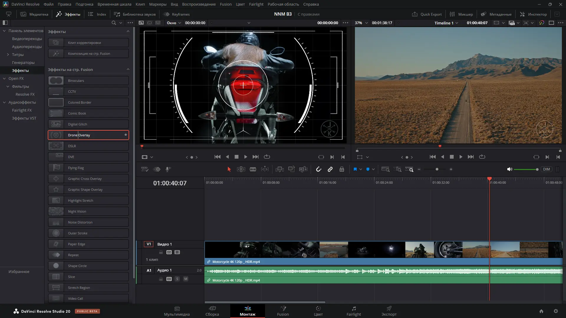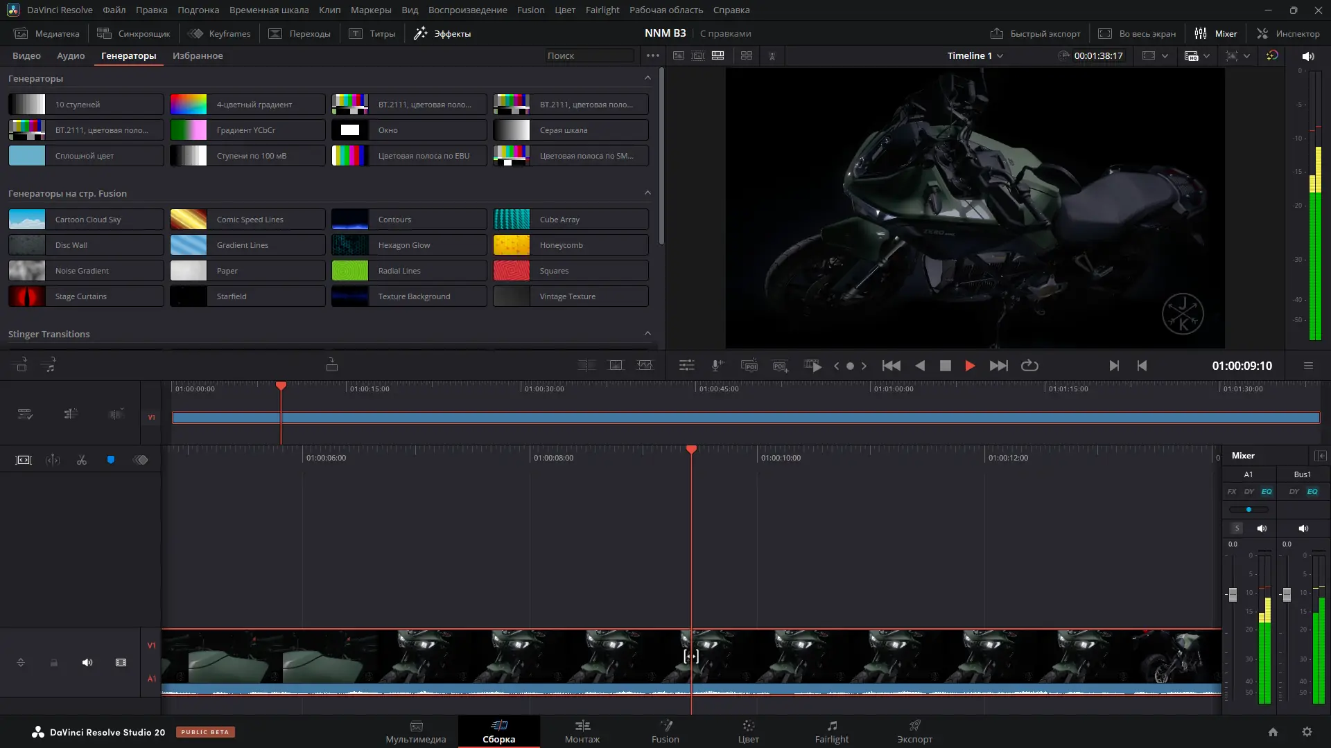 - Программа включает в себя отдельные рабочие среды для монтажа, цветокоррекции, визуальных эффектов и звукового оформления.