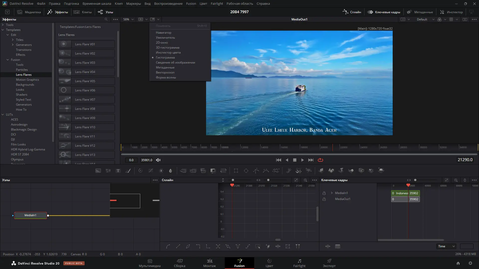 - Встроенный движок Fusion для создания визуальных эффектов и 3D-графики.