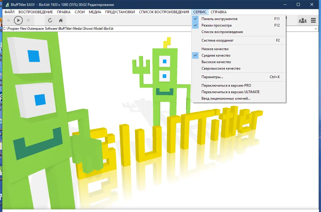 BluffTitler Easy — это упрощённая версия мощного редактора для генерации 3D-текста и анимированных композиций. Программа ориентирована на пользователей, которым нужны эффектные титры без необходимости изучения сложных 3D-редакторов. Она активно используется в видеомонтаже для дополнения роликов динамичными надписями, логотипами и визуальными эффектами.