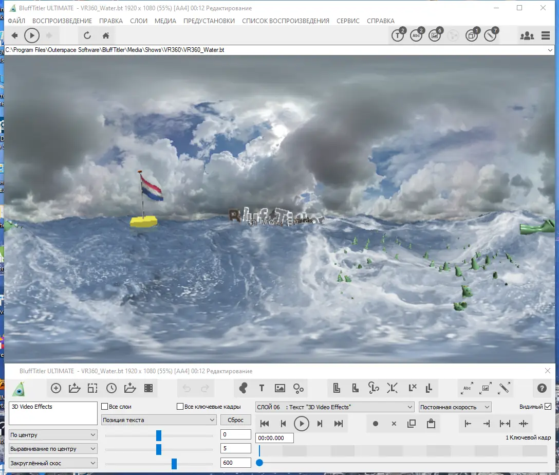 BluffTitler представляет собой специализированный редактор для генерации 3D-текста и анимированных эффектов, ориентированный на пользователей, которые работают с видео. Программа отличается простым интерфейсом и минимальными требованиями к оборудованию, при этом позволяя создавать сложные визуальные композиции. Её часто используют в качестве дополнения к видеоредакторам, так как результат легко интегрируется в проекты Adobe Premiere, Sony Vegas, MAGIX video deLuxe и других.