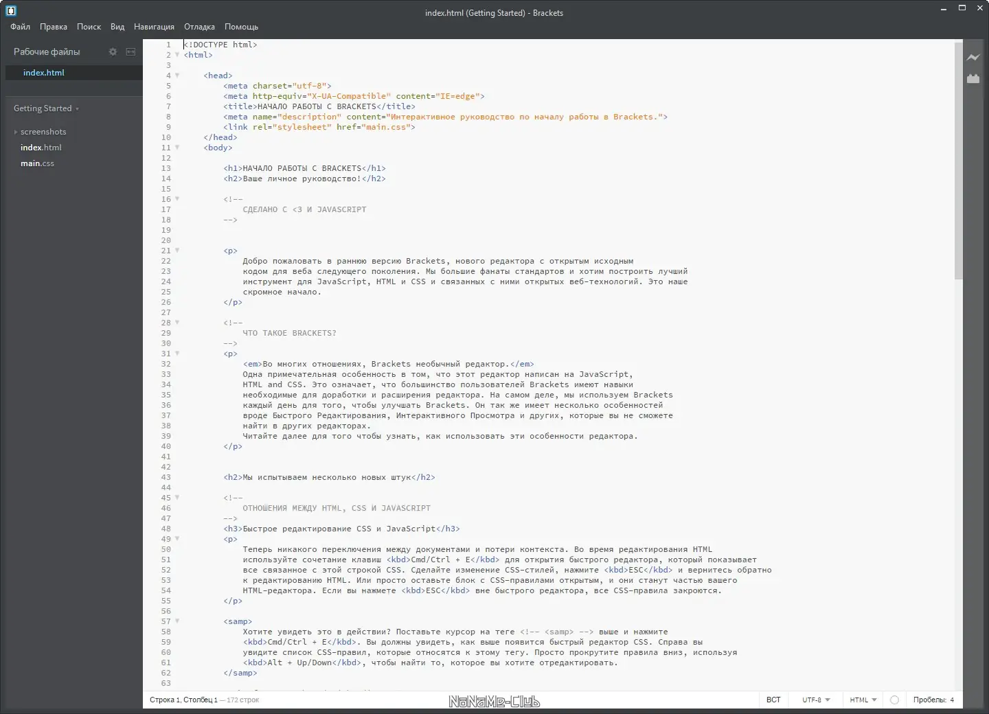 Brackets — это современный редактор кода с открытым исходным кодом, разработанный для веб-разработчиков, которые работают с HTML, CSS и JavaScript. Программа сочетает минимализм интерфейса с мощными инструментами редактирования, обеспечивая высокую производительность и удобство при создании веб-проектов. Особое внимание уделено режиму живого предпросмотра и интеграции с браузером для мгновенного отображения изменений в коде.
