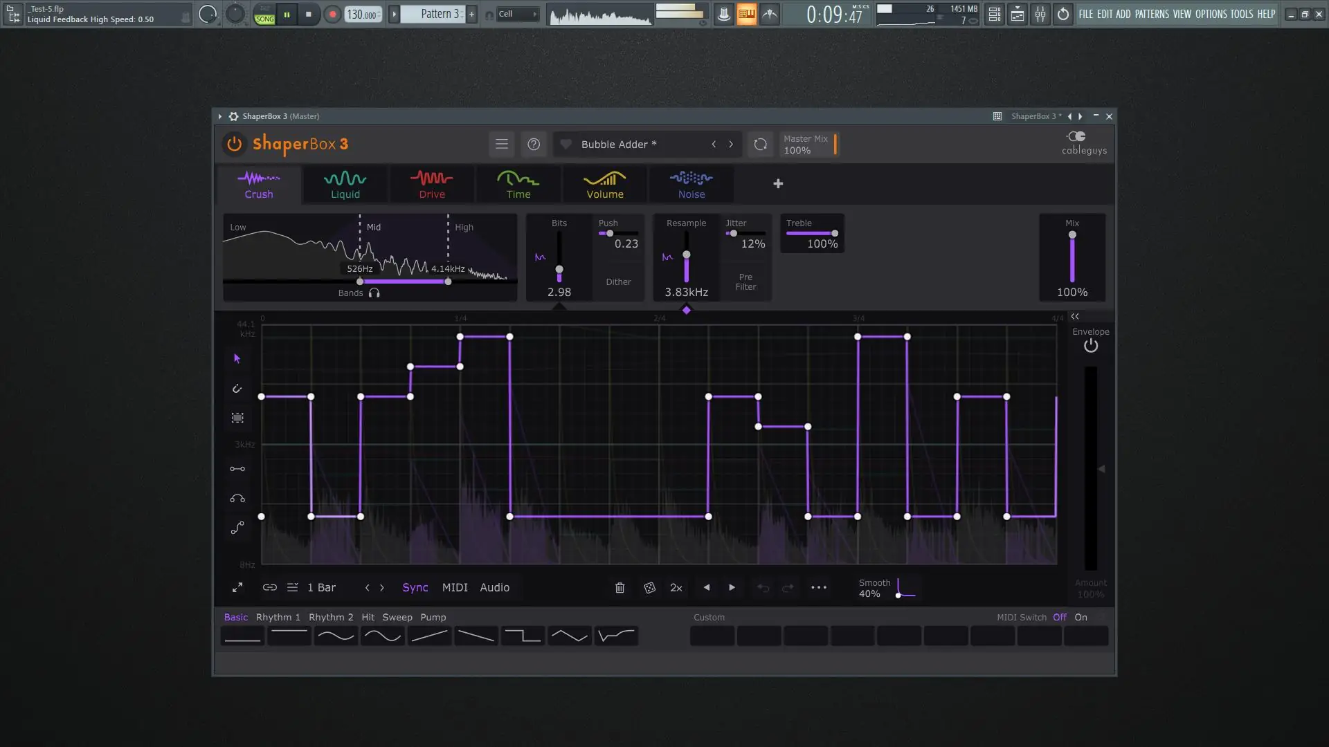 Использование плагина начинается с загрузки в DAW в формате VST3, VST2 или AAX. После установки доступен единый интерфейс с переключением между девятью эффектами. Каждый из них управляется графическим редактором формы сигнала, где можно рисовать кривые воздействия по времени. Основные режимы — Envelope Follower, LFO и ручной рисунок формы. Синхронизация с тактом позволяет привязывать изменения к долям, например, 1/4, 1/8 или более сложным ритмическим структурам. Функция Sidechain позволяет запускать эффекты по внешнему источнику, например, приглушать бас при ударе по бочке. Для точной настройки доступна трёхполосная фильтрация, где низкие, средние и высокие частоты обрабатываются отдельно. LiquidShaper открывает возможности для создания фазовых и флэнджерных эффектов, а CrushShaper добавляет lo-fi текстуру. После установки необходимо выполнить синхронизацию пресетов через меню «Sync Presets», чтобы получить полный доступ к библиотеке.