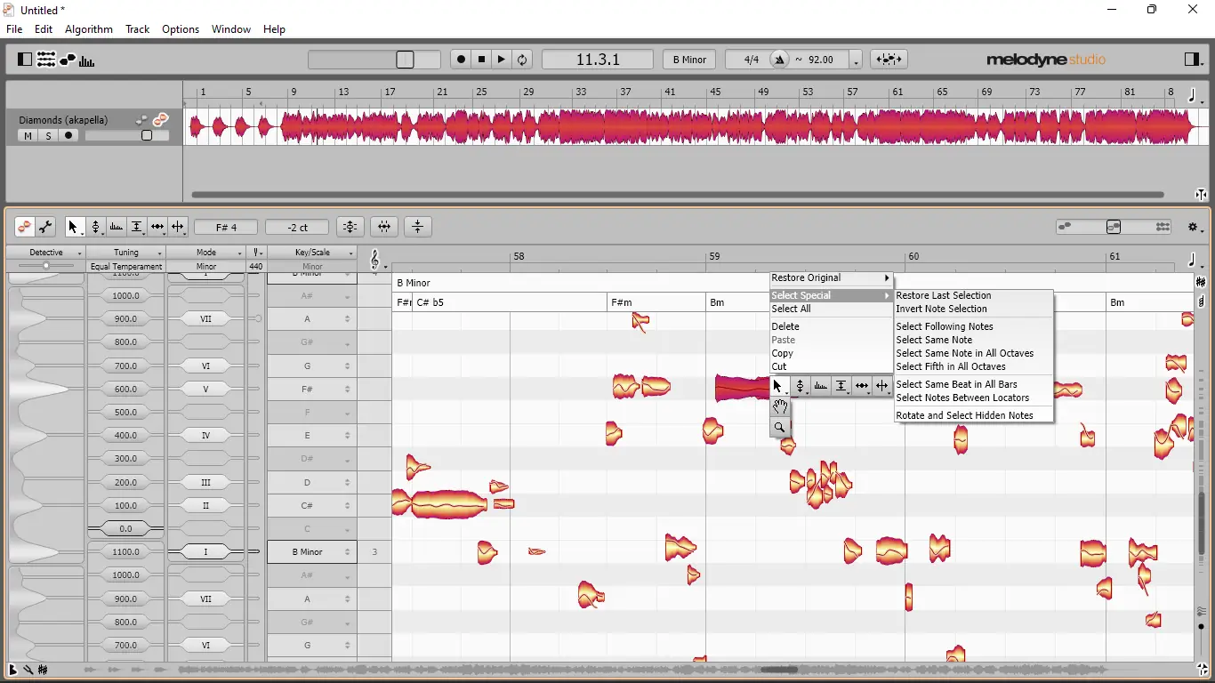 После загрузки аудиоматериала программа автоматически проводит его анализ, определяя темп, тональность и отдельные ноты. Пользователь видит звук в виде нот на сетке, где каждая нота может быть перемещена по высоте или растянута во времени. Новые функции melodyne 5, такие как инструмент Fade Tool и Leveling Macro, дают контроль над динамикой каждой ноты. С помощью трека аккордов можно быстро привести мелодию в соответствие с гармонией композиции. Алгоритм «Percussive Pitched» эффективен для обработки ударных с определённой высотой звука, а улучшенный анализ колебаний высоты тона позволяет сохранять естественное звучание вокала. Работа с полифонией стала возможной благодаря технологии Complex, которая теперь гибко обрабатывает форманты.
