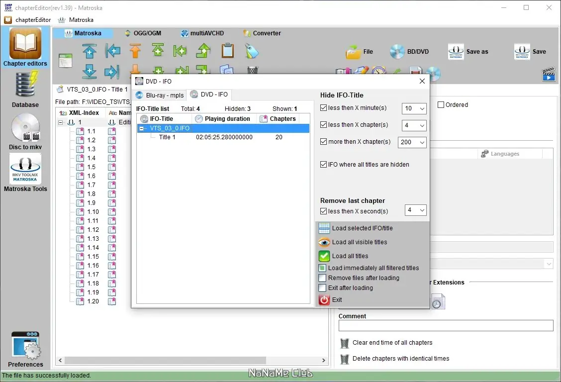 chapterEditor — это компактное приложение для редактирования таймкодов и названий глав в видеофайлах, поддерживающее множество форматов, включая DVD IFO, Blu-ray mpls, Matroska, OGG и другие. Программа работает без установки, имеет вкладочный интерфейс и позволяет создавать, редактировать и конвертировать файлы глав. Подходит для пользователей, работающих с архивацией дисков, созданием MKV-контейнеров или настройкой субтитров и разметки времени.