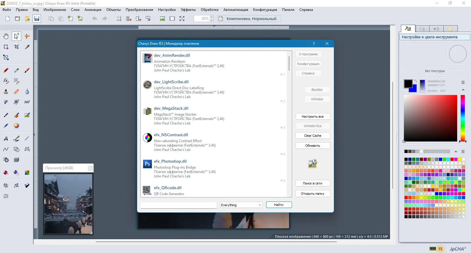 - Поддержка плагинов Photoshop (.8BF), форматов GIMP, Krita, Paint.NET и OpenRaster
