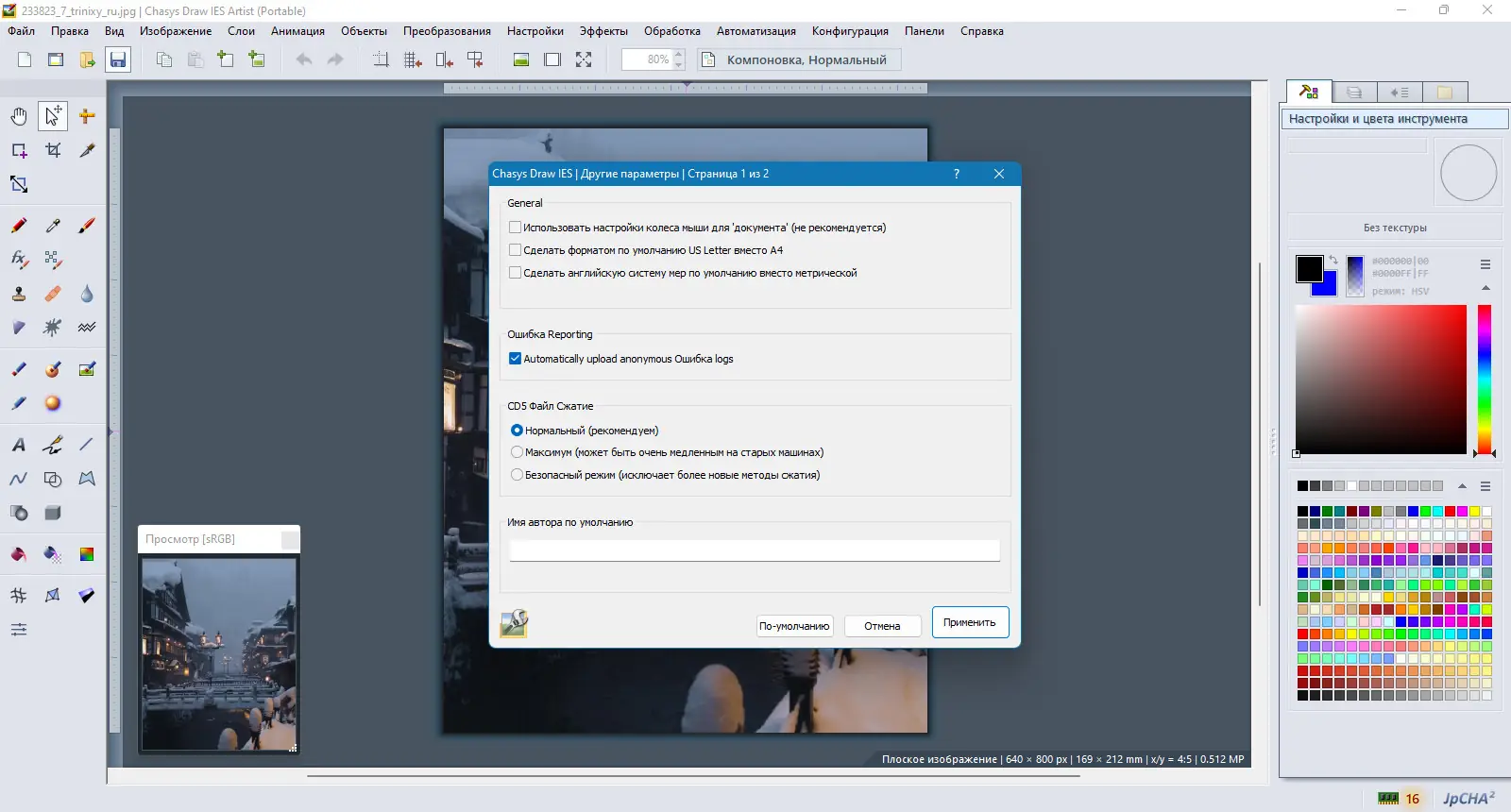После установки доступен выбор языка интерфейса, включая русский, который загружается автоматически при подключении к интернету. Для создания портативной версии достаточно выбрать в меню «Файл» опцию установки на USB-накопитель. Интерфейс настраивается под сенсорное управление, поддерживает стилус с учётом силы нажатия и работает с несколькими мониторами при высоком DPI. Все действия можно отменить благодаря системе Unlimited Undo/Redo, а автосохранение работает асинхронно, защищая данные при сбоях.