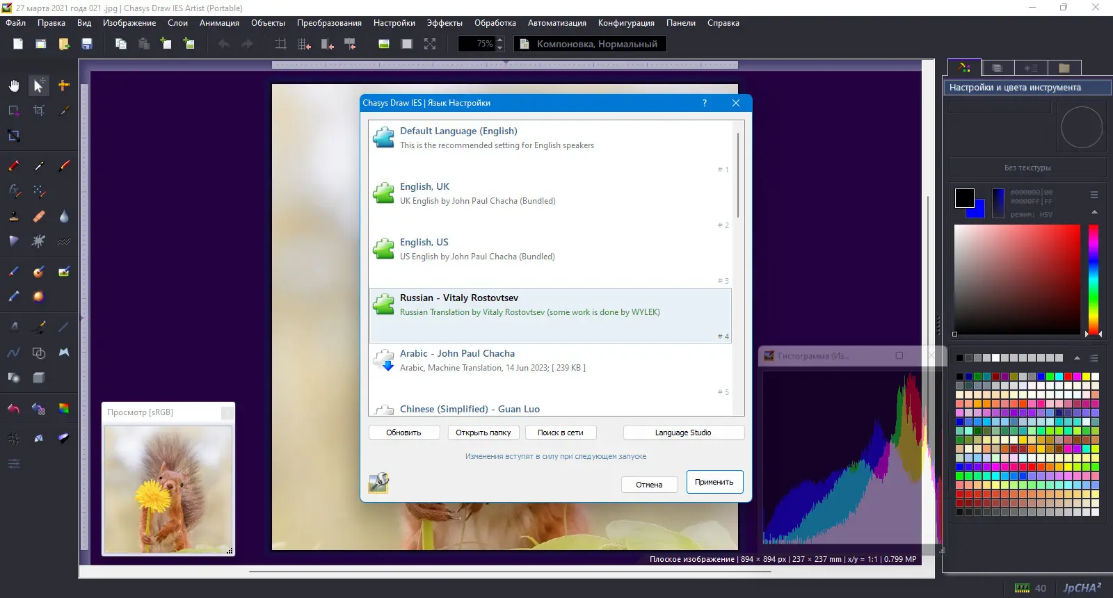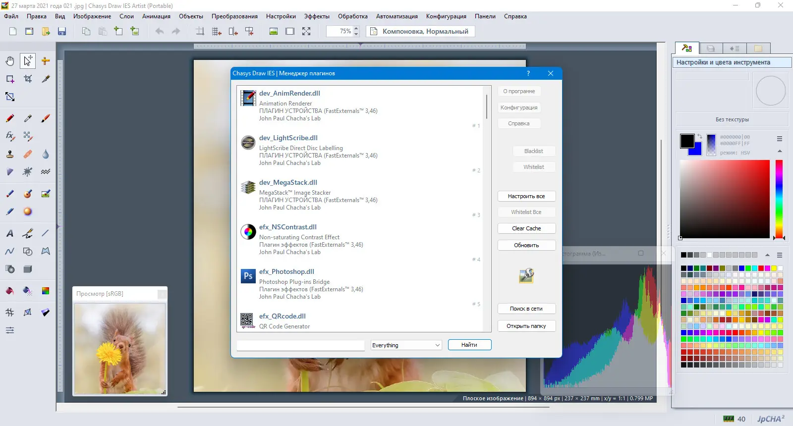 - Поддержка плагинов Photoshop (.8BF) и совместимость с форматами GIMP, Paint.NET, Krita и других редакторов