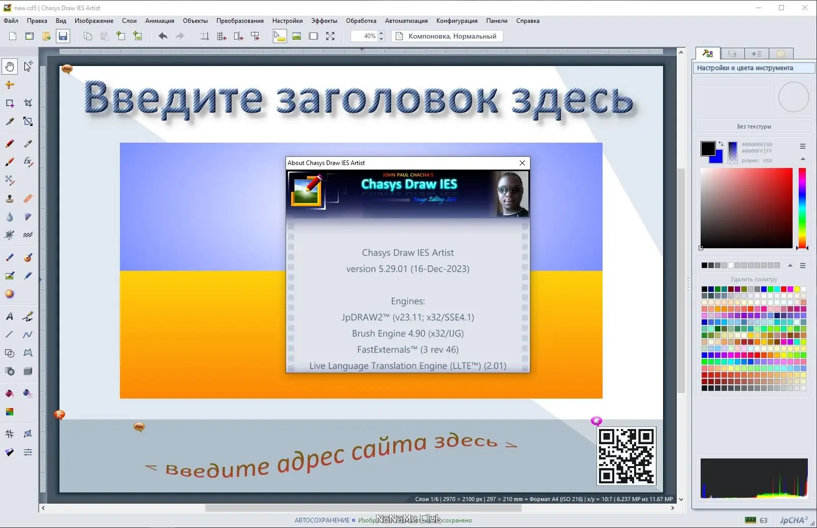 Chasys Draw IES — это многофункциональный графический пакет, включающий редактор с поддержкой слоёв и анимации, конвертер, просмотрщик и инструменты для работы с изображениями с цифровых камер. Программа оптимизирована под многоядерные процессоры и сенсорные экраны, обеспечивая высокую производительность при работе с изображениями сверхвысокого разрешения. В основе редактора лежит технология Chasys Draw IES Artist, обеспечивающая уникальные возможности для цифрового творчества.