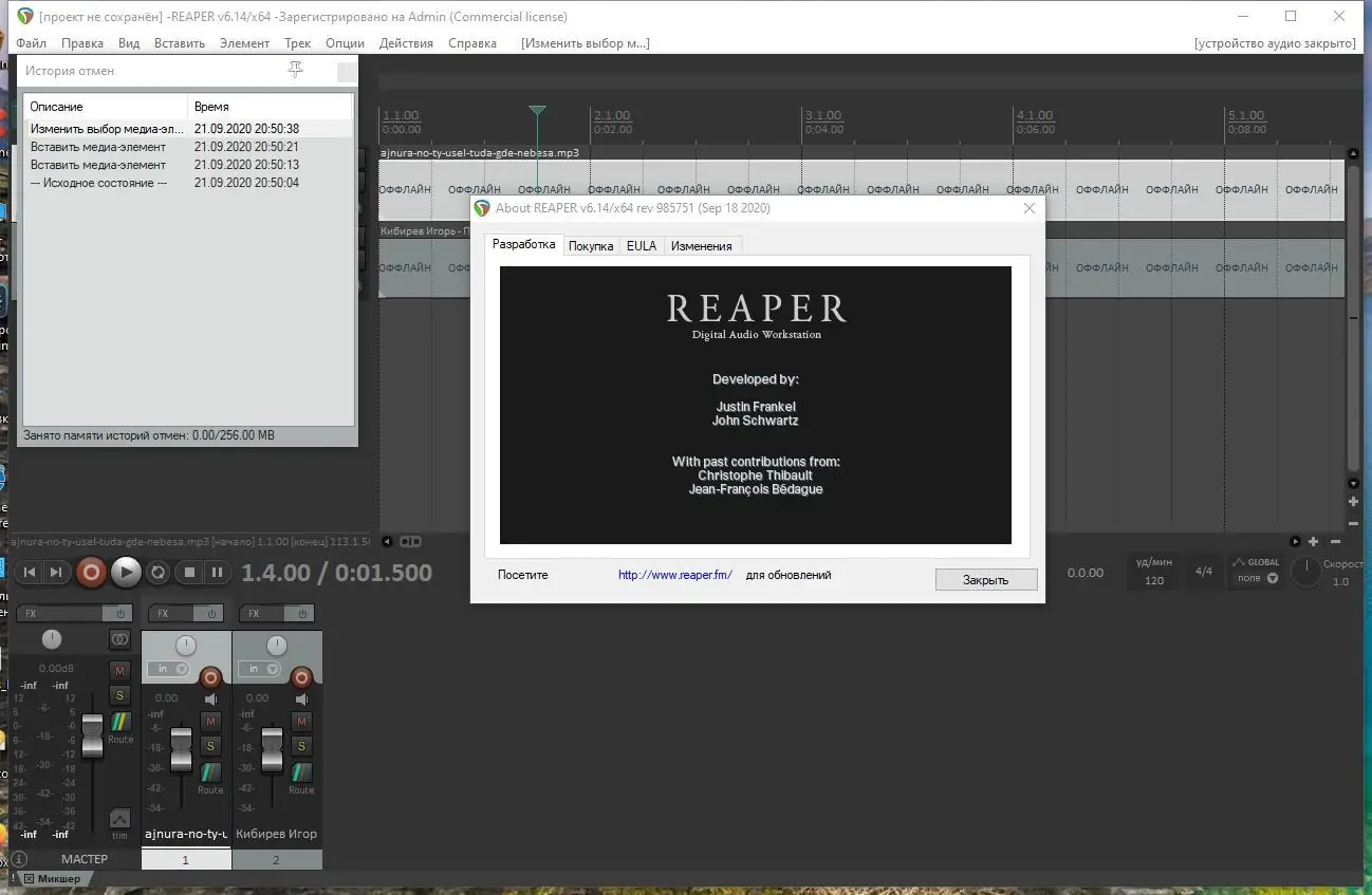 Интерфейс Reaper интуитивно понятен и легко настраивается под нужды пользователя. После запуска можно сразу создавать проект, добавлять треки и подключать MIDI-устройства. Каждый трек может содержать неограниченное количество клипов, а эффекты применяются как к дорожкам, так и к отдельным фрагментам. Автоматизация параметров позволяет точно контролировать громкость, панораму, эффекты и другие настройки во времени.