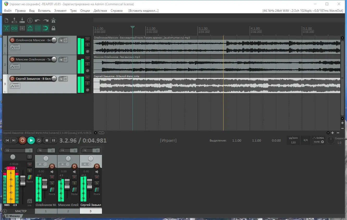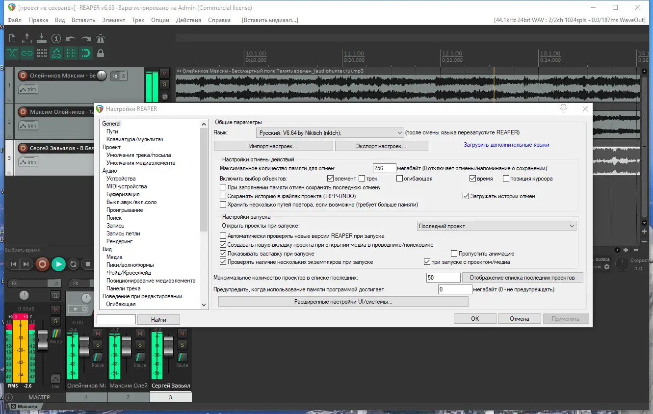 REAPER демонстрирует высокую эффективность даже при работе с большими проектами и минимальными аппаратными ресурсами.