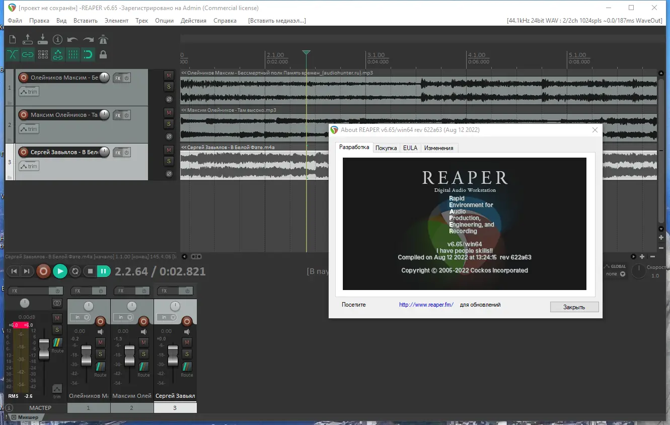 Cockos REAPER — это мощный и гибкий цифровой аудиоредактор, предназначенный для записи, редактирования, обработки и микширования звука. Программа подходит как профессиональным звукорежиссёрам, так и начинающим музыкантам, предлагая широкие возможности при минимальных требованиях к системе. Благодаря оптимизированному ядру, она стабильно работает даже на слабых компьютерах, обеспечивая высокое качество звучания и полный контроль над процессом создания аудио.