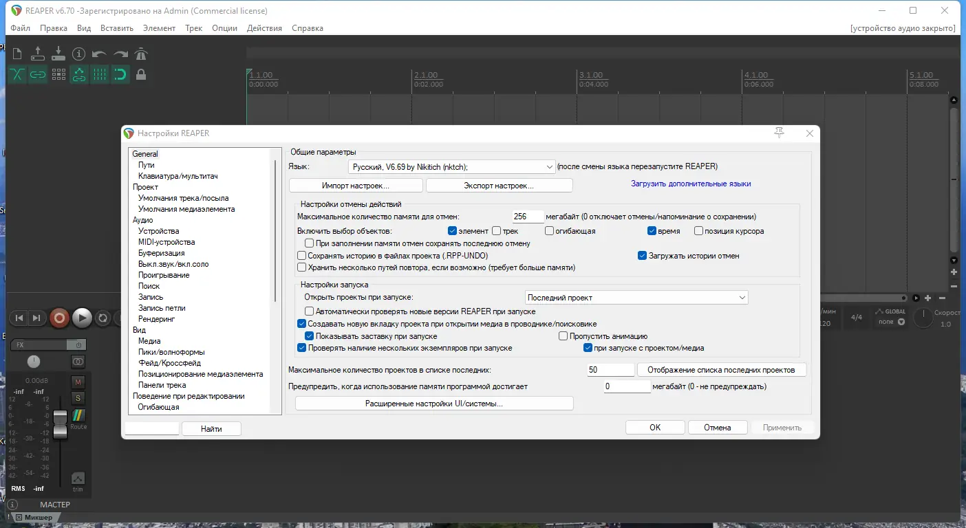 - REAPER v 7.42 демонстрирует высокую оптимизацию, особенно в части обработки многоканального звука и низкой задержки при записи.