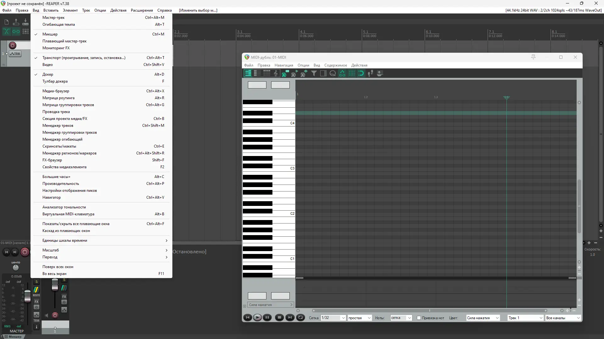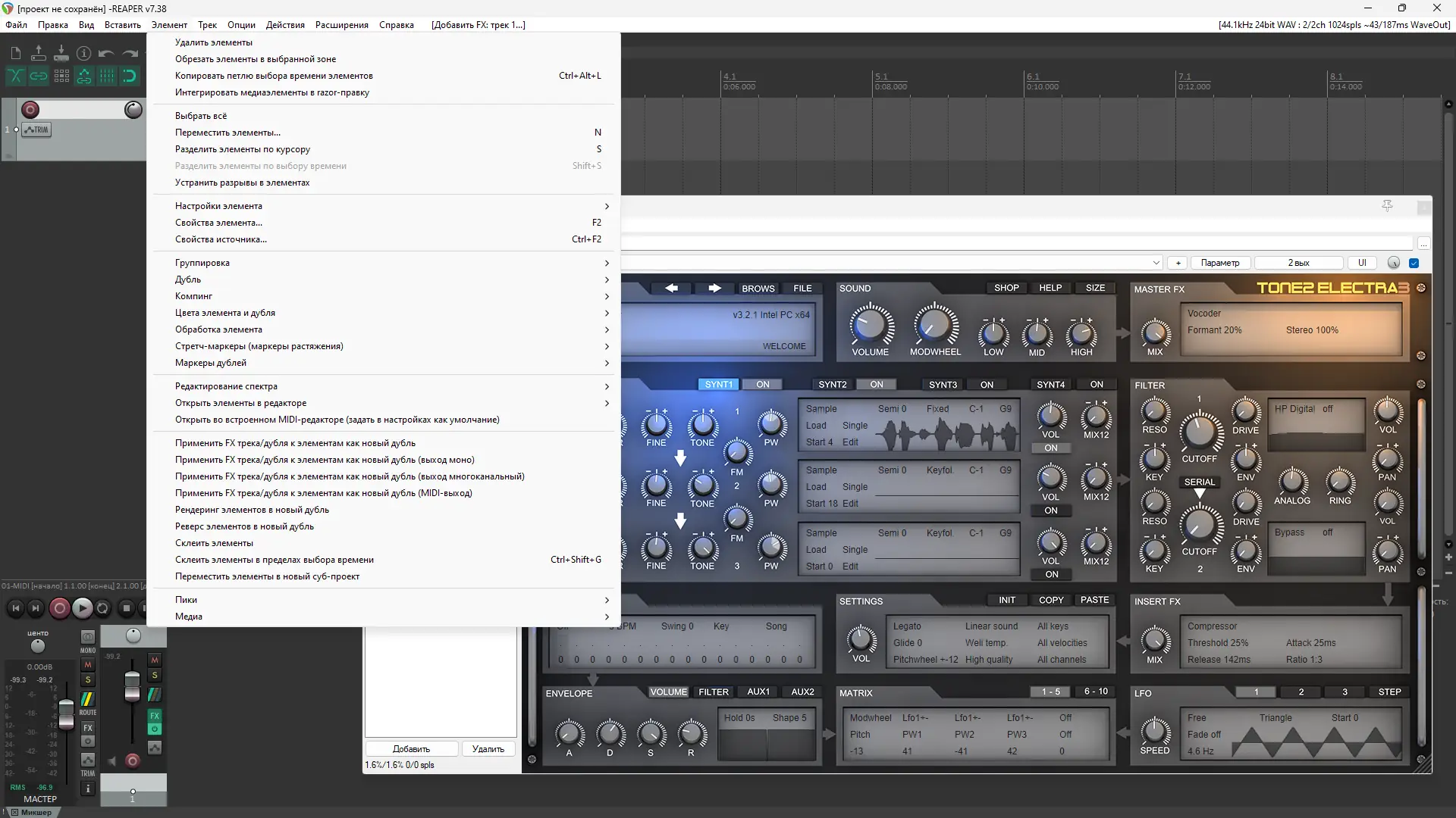 Работа в Cockos REAPER начинается с создания проекта, где можно добавлять аудио- и MIDI-треки, настраивать маршрутизацию сигнала и подключать виртуальные инструменты. Пользователь может записывать звук с микрофона или внешнего устройства, а также импортировать готовые файлы. Редактирование осуществляется с помощью интуитивно понятных инструментов: можно изменять громкость, применять эффекты, настраивать панораму и временные метки. Встроенный паттерновый редактор позволяет быстро создавать биты и последовательности, а клавиатурные команды ускоряют выполнение повседневных задач. Мастер-трек даёт полный контроль над финальным миксом, включая сведение в многоканальных форматах. Поддержка 7.42 версии включает улучшенную стабильность и новые функции для обработки звука.