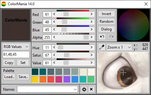 Работа с программой начинается с активации пипетки — достаточно нажать соответствующую кнопку и выбрать точку на экране. Цвет мгновенно отобразится в основном окне, а все его представления в различных форматах станут доступны для копирования. Пользователь может вручную корректировать значения с помощью ползунков или вводить их напрямую. Сохранённые цвета можно группировать в палитры, добавлять имена и использовать повторно. Портативная версия позволяет запускать утилиту с флешки без установки, что удобно при работе на разных компьютерах.