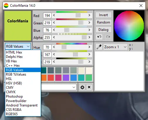 - Программа поддерживает более 20 форматов цветовых кодов, включая редкие специализированные, такие как RGB565 для микроконтроллеров.