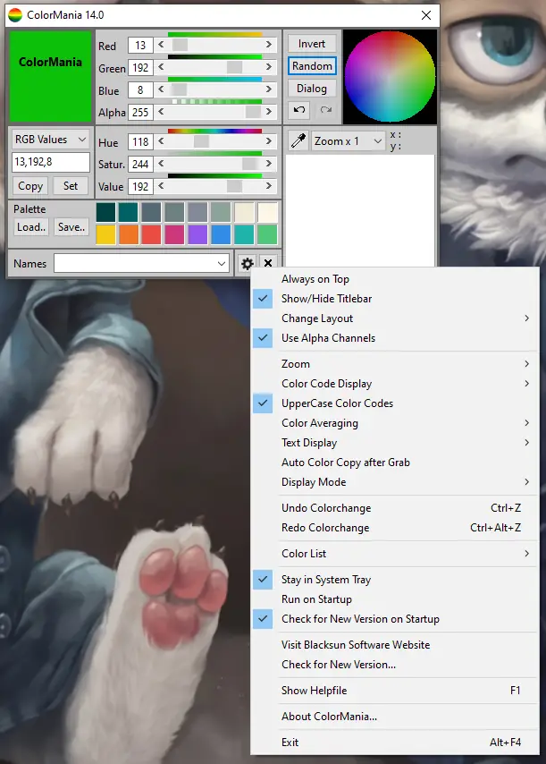 ColorMania — это мощный инструмент для точного выбора и анализа цветов, предназначенный для дизайнеров, верстальщиков и разработчиков. Программа позволяет мгновенно захватывать цвет с любого участка экрана, преобразовывать его в более чем 20 форматов и использовать в различных графических и программных средах. Благодаря поддержке прозрачности, палитр и портативной версии, утилита становится незаменимой в повседневной работе.