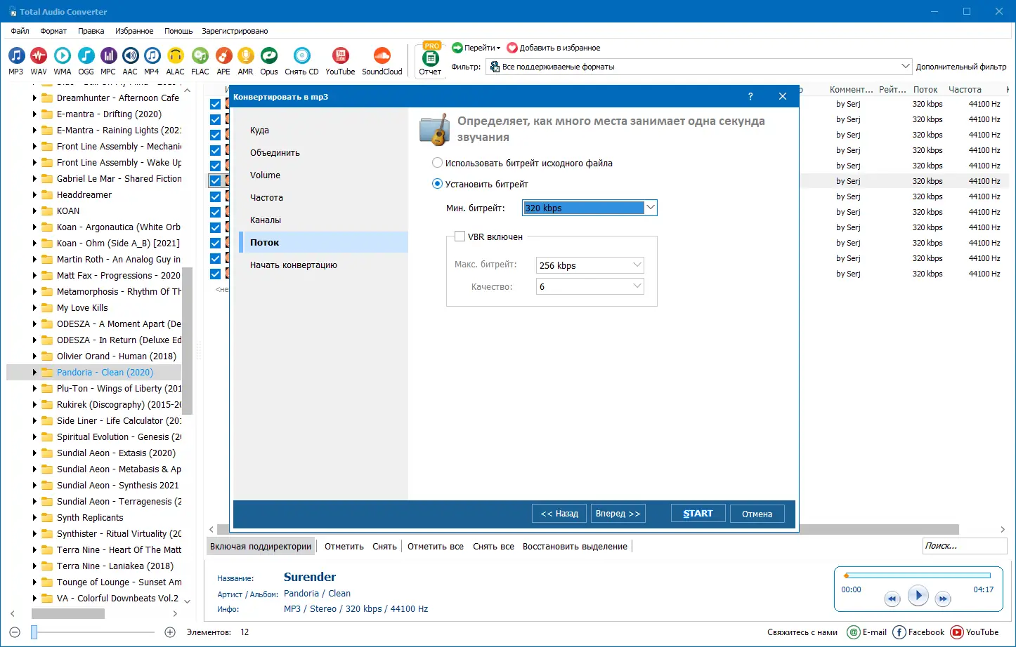 - Прямое кодирование без промежуточных WAV-файлов, что ускоряет процесс