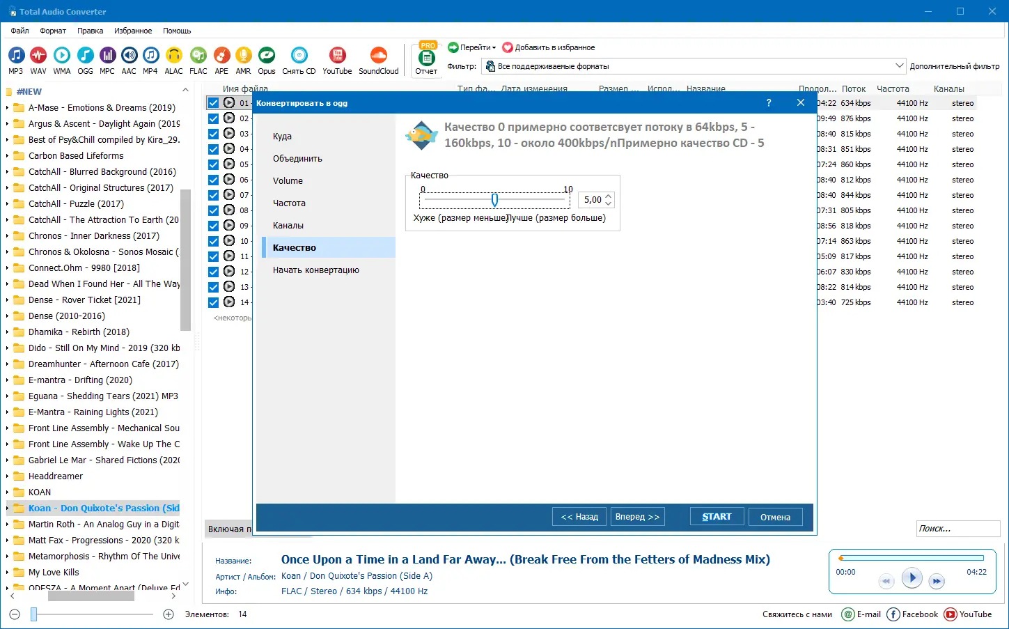 - Широкая поддержка форматов, включая редкие и устаревшие, позволяет конвертировать практически любые аудиофайлы.