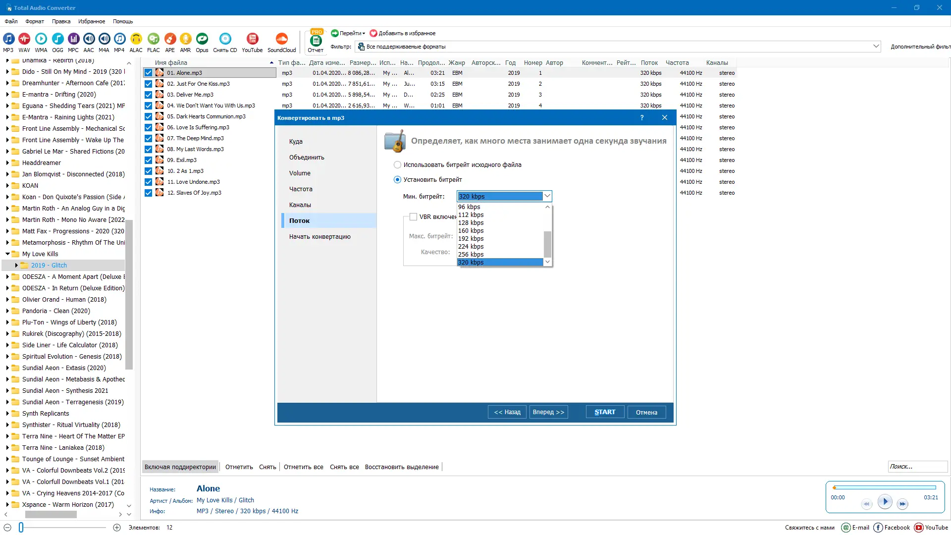 - Позволяет изменять битрейт, частоту дискретизации и другие параметры аудиопотока.