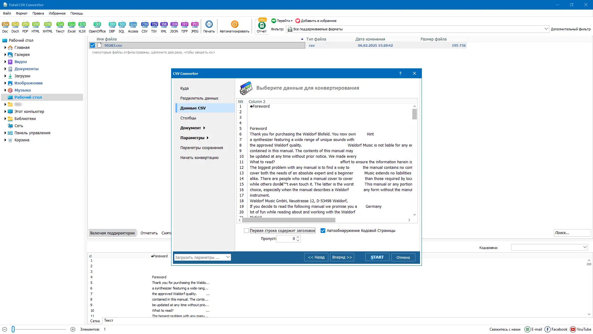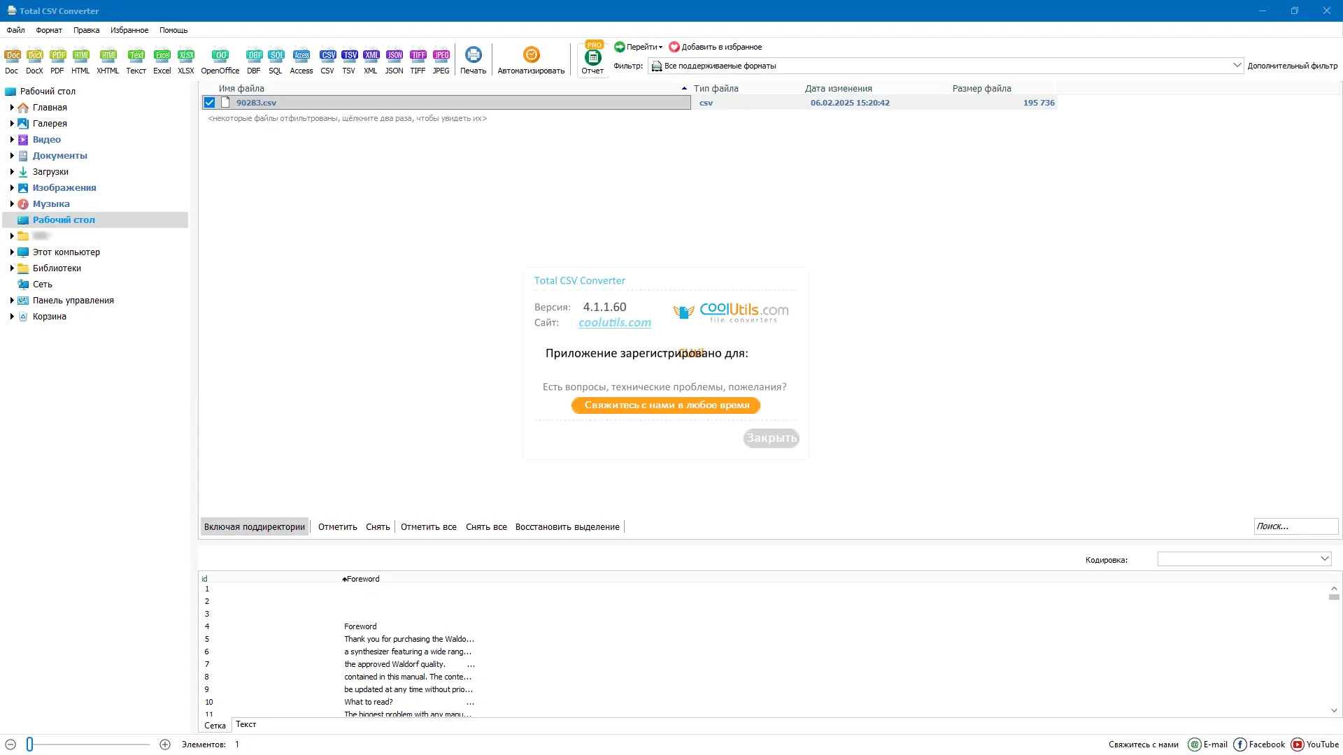 Работа с CoolUtils Total CSV Converter