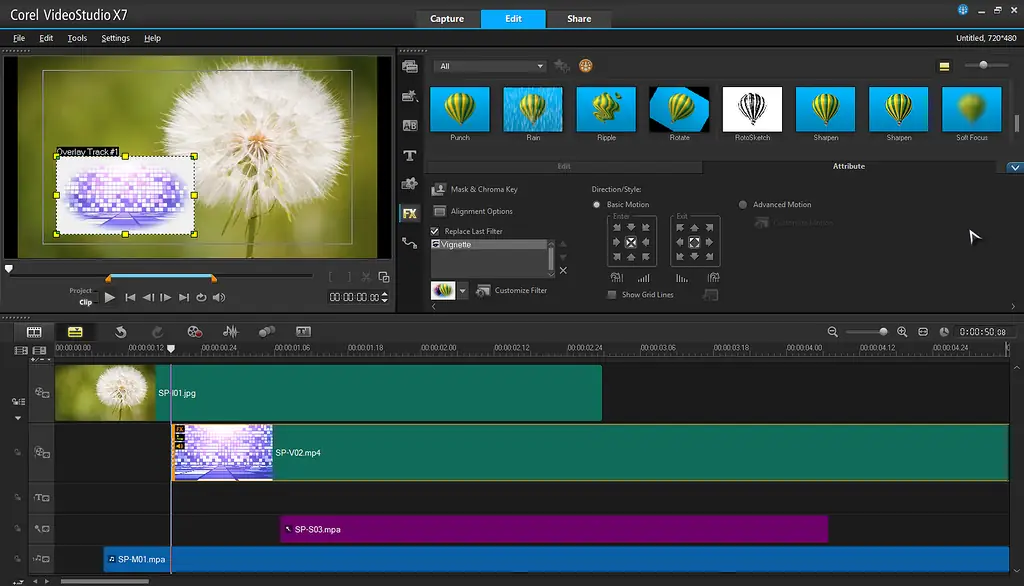 Corel VideoStudio — это программное обеспечение для видеомонтажа, ориентированное как на любителей, так и на полупрофессиональных пользователей. Он предлагает широкий набор инструментов для редактирования видео, включая наложение переходов, титров, аудиодорожек, а также работу с эффектами в реальном времени. Поддержка 4K-видео и технология отслеживания движения позволяют создавать динамичные и визуально насыщенные проекты.