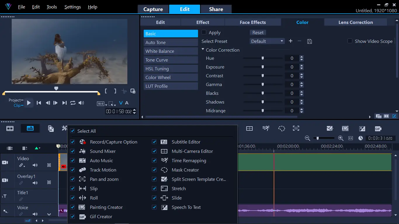 Corel VideoStudio — это универсальное решение для видеоредактирования, ориентированное на пользователей разного уровня подготовки. Программа предлагает продвинутые функции, такие как мультикамерный монтаж, видео-маски, цветокоррекция по LUT-профилям и поддержка 360°-видео. Интерфейс остаётся понятным даже для начинающих, а встроенные обучающие материалы помогают быстро освоить базовые и продвинутые инструменты. В версии Ultimate реализованы эксклюзивные возможности, включая индексирование лиц и работу с ProRes Smart Proxy.