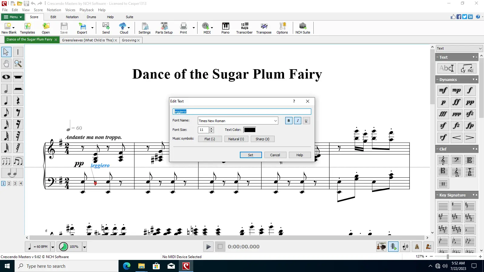 Crescendo Music Notation Editor — это приложение для композиторов, музыкантов и педагогов, позволяющее создавать музыкальные партитуры с высокой точностью. Программа поддерживает широкий спектр нотных символов, включая динамические обозначения, такие как forte, piano, а также выражения, связанные с изменением громкости, например, crescendo и его производные. Интерфейс адаптируется под разные типы инструментов и стили записи, что делает её универсальной для различных музыкальных жанров.