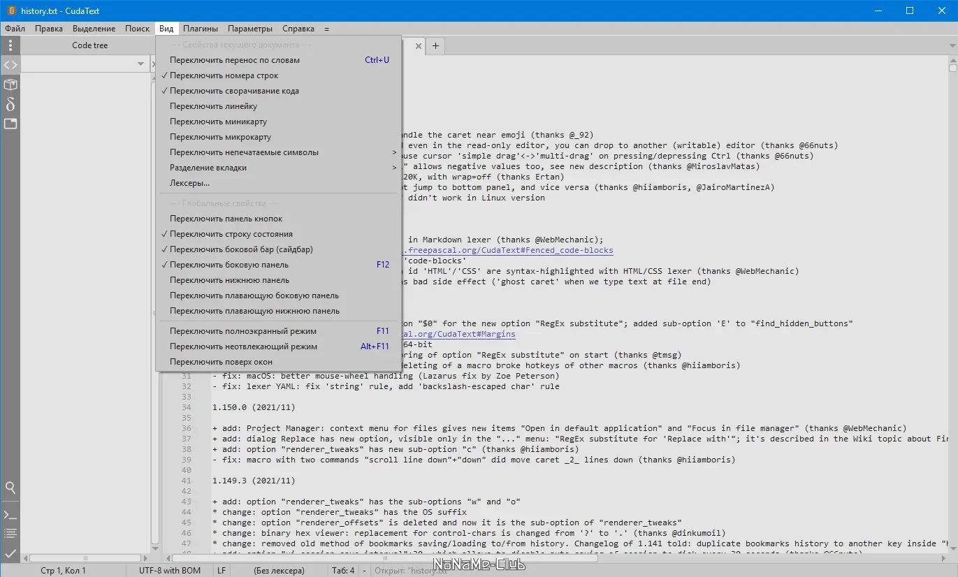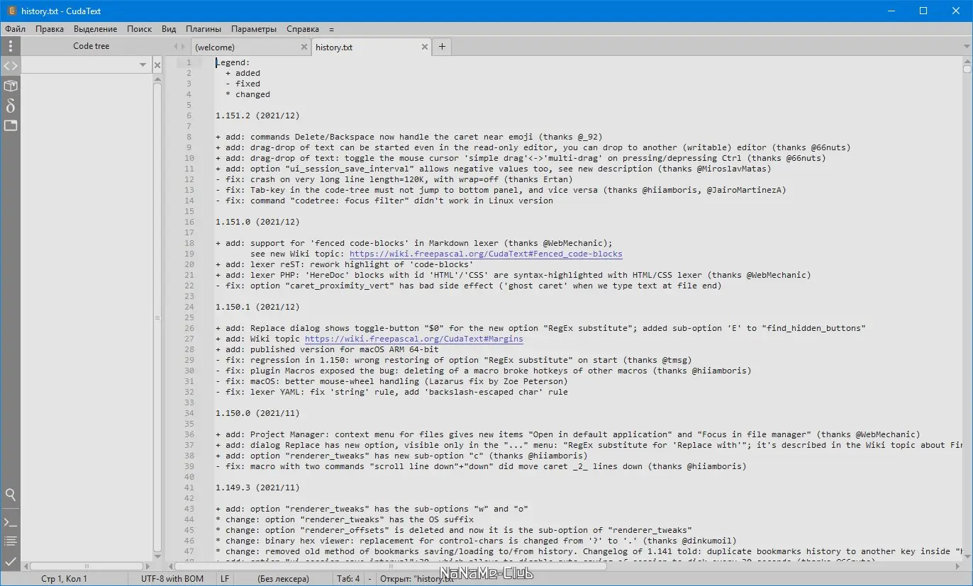 CudaText — это бесплатный мультиплатформенный редактор с поддержкой синтаксиса для более чем 150 языков программирования. Программа сочетает в себе гибкость, расширяемость через плагины и удобный интерфейс для эффективной работы с кодом.