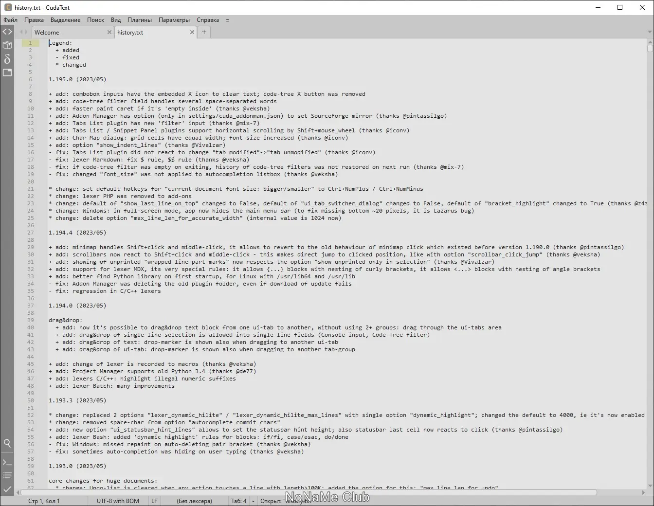 CudaText — это бесплатный мультиплатформенный редактор кода с открытым исходным кодом, поддерживающий синтаксис более чем 150 языков программирования. Программа предлагает широкие возможности для настройки интерфейса, работы с плагинами, включая lsp client и расширение функционала через c lsp, а также поддерживает портативный режим использования без установки.