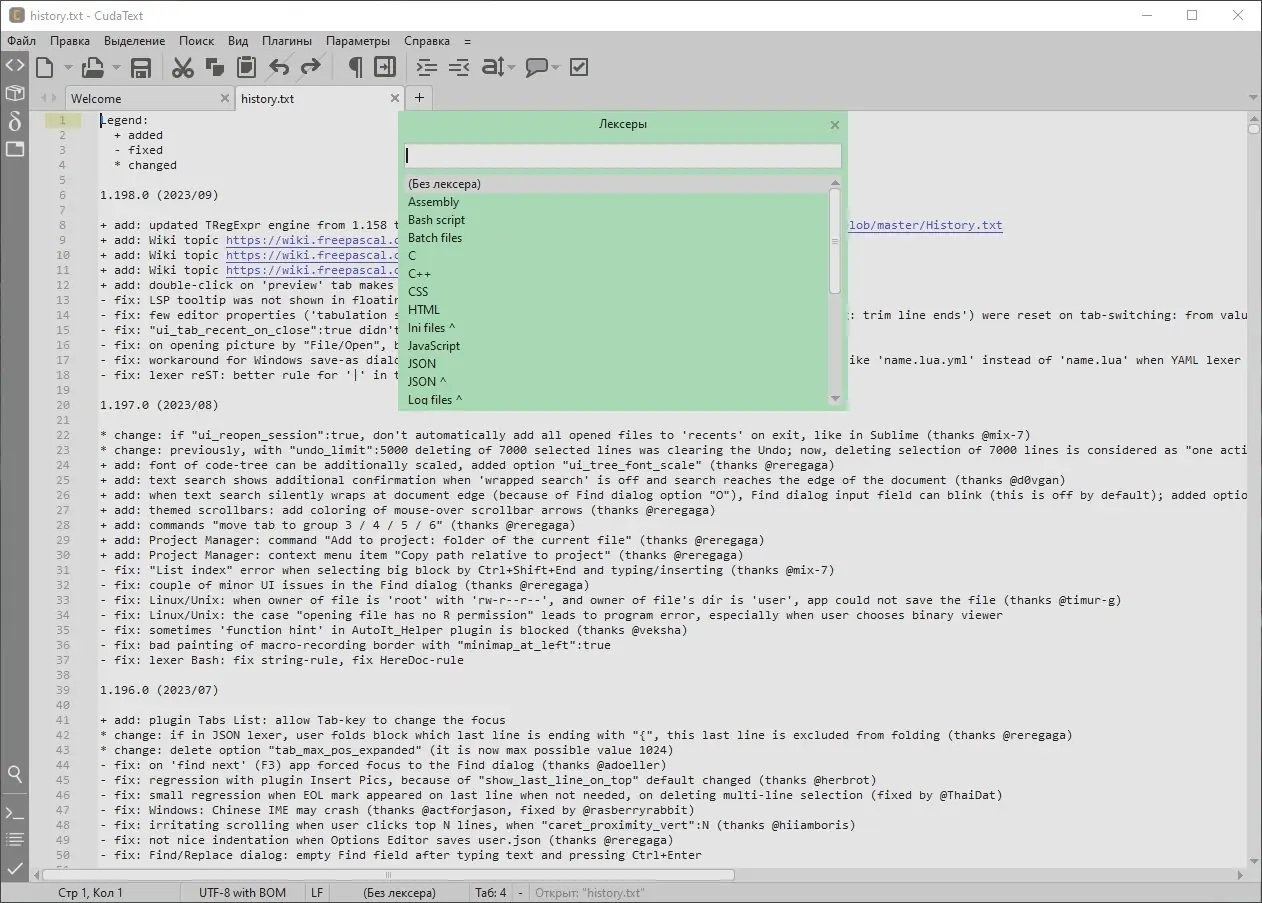 CudaText — это легковесный, но мощный текстовый редактор с открытым исходным кодом, разработанный с акцентом на поддержку программирования. Он функционирует на различных операционных системах, включая Windows, Linux и macOS, обеспечивая стабильную работу без необходимости установки. Программа изначально ориентирована на работу с кодом, но при этом остаётся удобной и для редактирования обычных текстовых файлов.