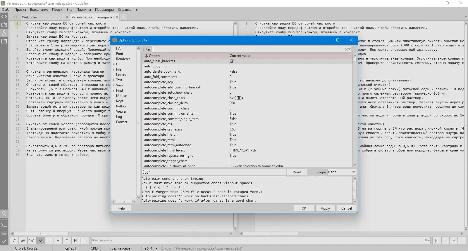 Работа с CudaText