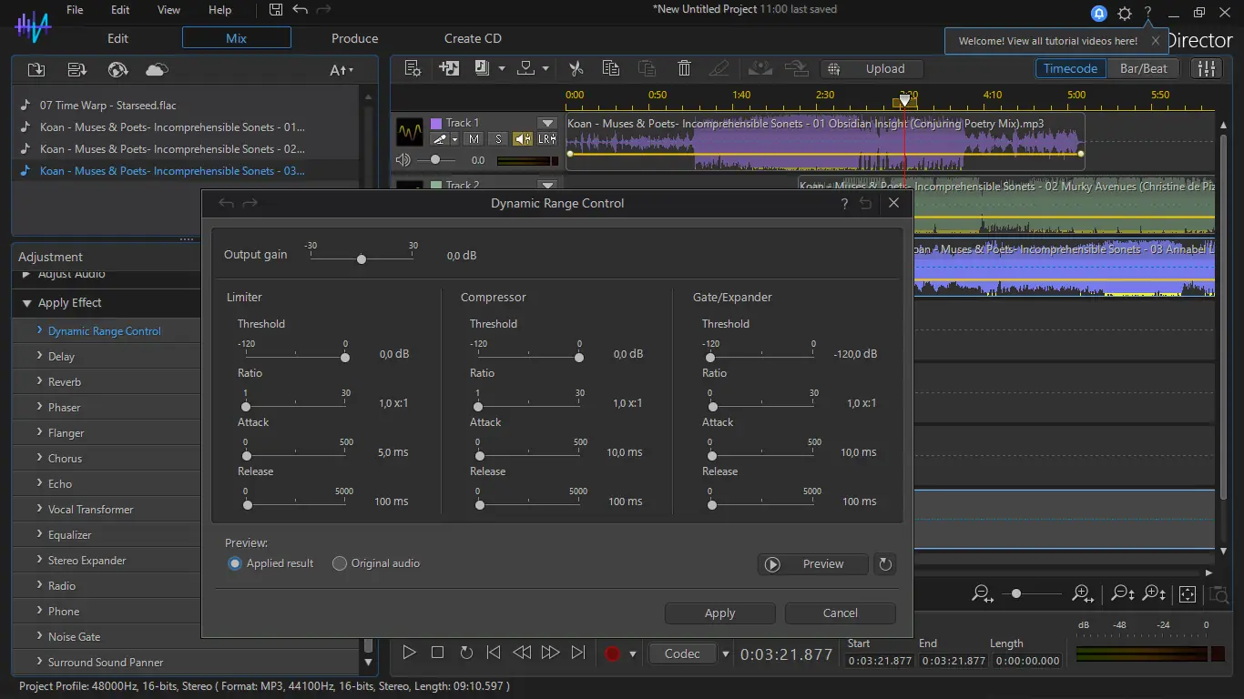 CyberLink AudioDirector — профессиональный аудиоредактор, предназначенный для обработки звука в видео и аудиопроектах. Программа сочетает в себе многодорожечное редактирование, инструменты шумоподавления, поддержку 360° видео и технологии искусственного интеллекта для улучшения качества аудио. Она подходит как для монтажёров, так и для звукорежиссёров, работающих с диалогами, саундтреками и пространственным звуком.