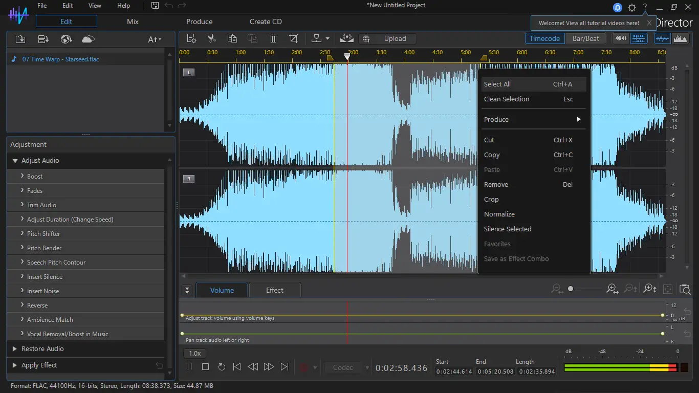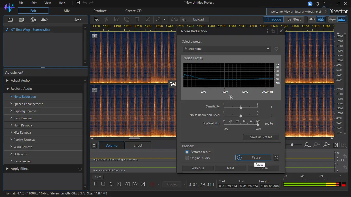 - Инструменты восстановления аудио: удаление щелчков, шипения, шумов и искажений.
