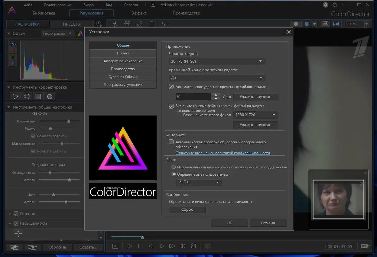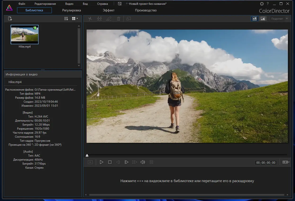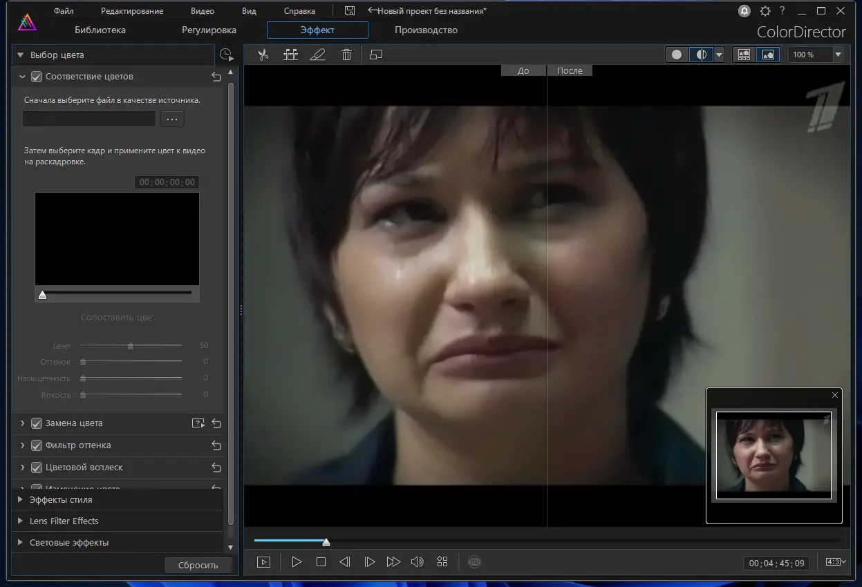 Работа с программой начинается с импорта видеофайла и выбора нужного фрагмента для обработки. Через панель инструментов доступны основные параметры цвета: температура, тон, насыщенность, экспозиция и контраст. Для точечной коррекции используется функция выделения областей с возможностью настройки маски и активацией трекинга. После настройки можно применить один из готовых пресетов или сохранить собственный профиль. Готовый результат экспортируется напрямую или передаётся в PowerDirector для дальнейшего монтажа.