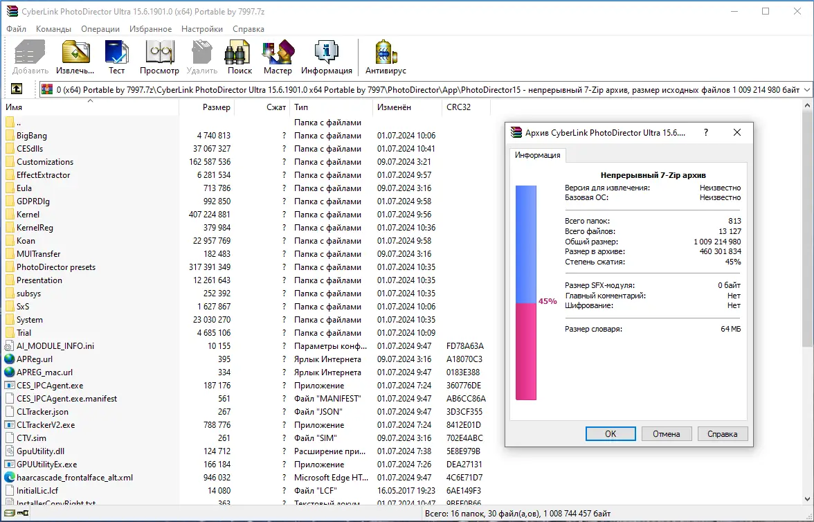 - Высокая производительность при работе с большими файлами и архивами