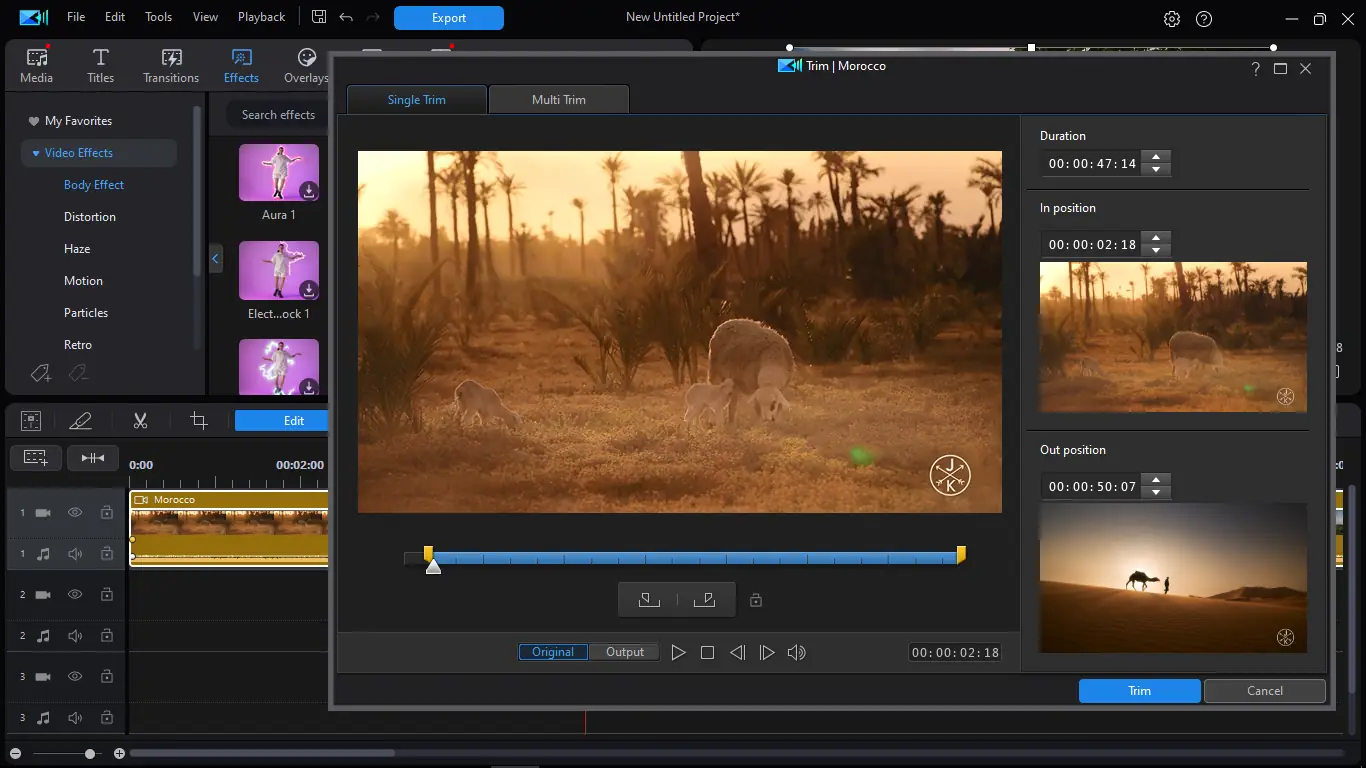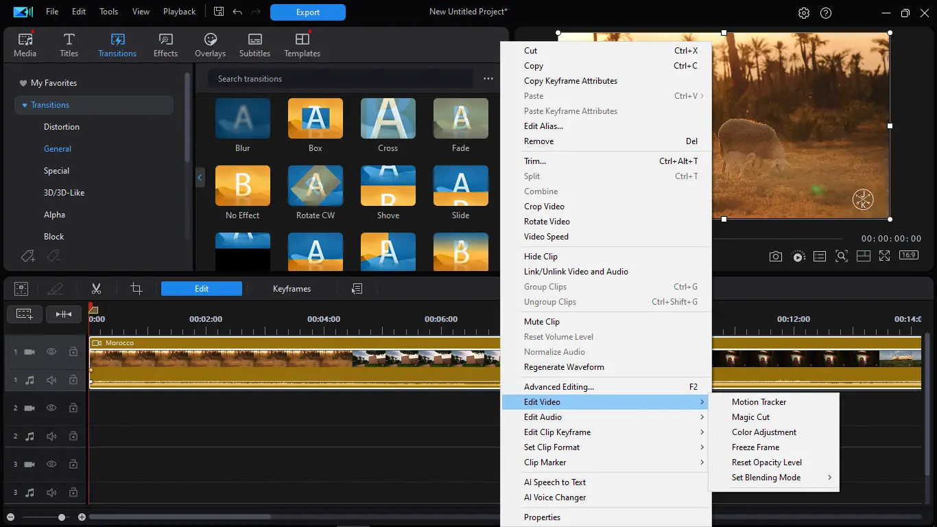 Программа предлагает многоуровневую систему редактирования с поддержкой нескольких дорожек, эффектов и переходов. Пользователь может импортировать видео с цифровых камер, смартфонов, дронов и других устройств, включая материалы в формате MKV и FLV. Интерфейс адаптирован под русский язык, что упрощает освоение функционала. Работа с ключевыми кадрами, слоями и эффектами осуществляется через удобные конструкторы — титров, картинки в картинке, частиц и меню. Для ускорения монтажа доступна функция Magic Movie, которая автоматически создает фильм по заданным критериям. Поддержка двойного монитора и масштабирование предварительного просмотра обеспечивают комфорт при детальной настройке проекта. Экспорт возможен в различных форматах, включая Matroska (MKV), MPEG-4, а также на устройства Apple, Sony и мобильные платформы.