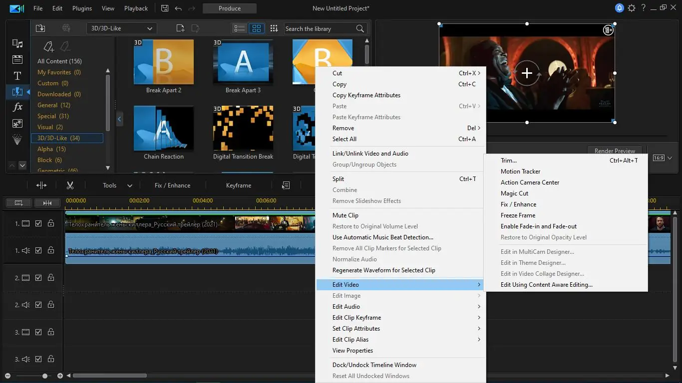 Работа с CyberLink PowerDirector начинается с импорта медиафайлов: видео, фото, аудиодорожек и 3D-контента. Интерфейс организован по принципу временной шкалы, где можно добавлять несколько видео- и аудиодорожек, накладывать эффекты, настраивать переходы и управлять слоями. Встроенный инструмент Magic Movie помогает автоматически создавать фильмы по шаблонам, подбирая музыку и эффекты под стиль контента. Для тонкой настройки доступны ключевые кадры, панель анимации и ручное управление параметрами каждого эффекта. Экспорт осуществляется в широком диапазоне форматов, включая MKV, AVCHD, H.265 HEVC и Blu-ray, с возможностью записи дисков BDMV и BDAV.