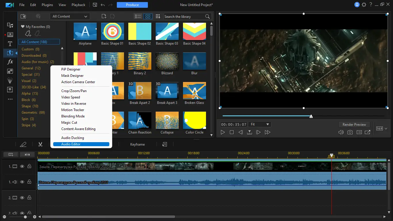 - Глубокая интеграция с инструментами для цветокоррекции, аудиообработки и 3D-эффектов.