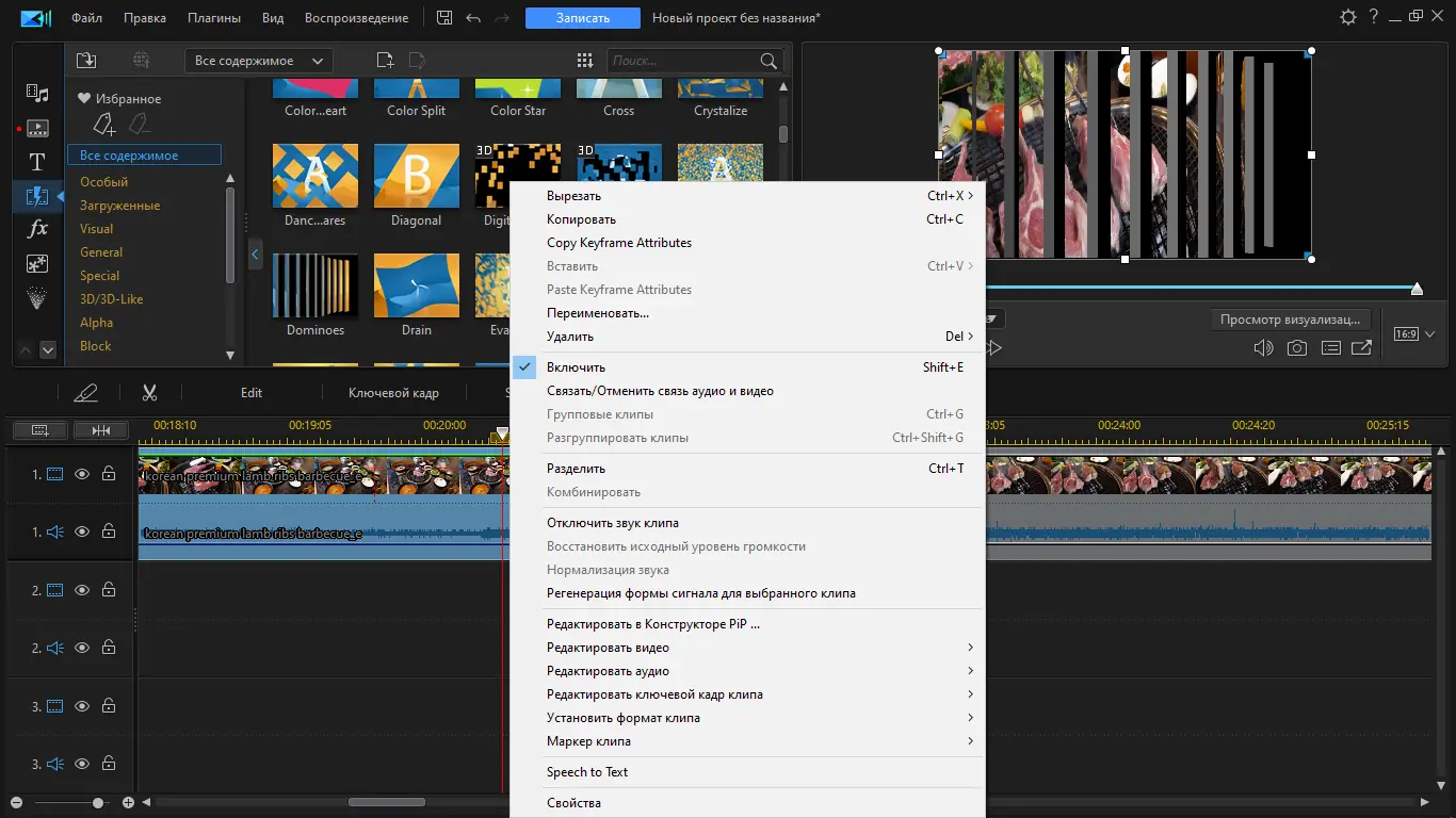 CyberLink PowerDirector — это мощный видеоредактор с продвинутыми инструментами для монтажа, цветокоррекции и обработки видео в форматах 4K и 3D. Программа обеспечивает высокую скорость рендеринга благодаря поддержке технологий GPU и многопоточности, а также включает в себя набор творческих функций для профессионального и полупрофессионального использования. Подходит как для новичков, так и для опытных видеомонтажеров.