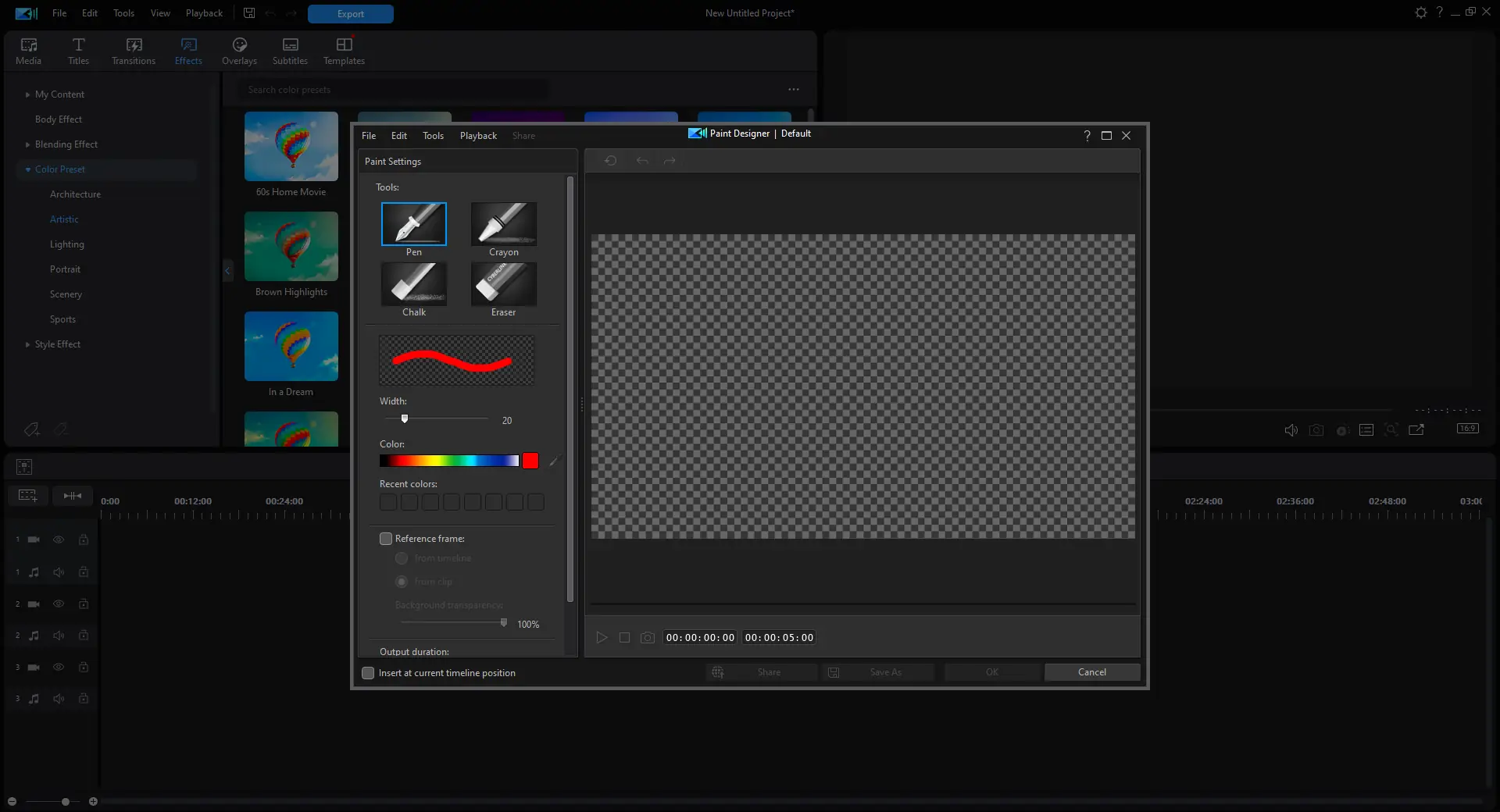 - Расширенные возможности по созданию эффектов с помощью конструкторов титров, частиц и картинки в картинке