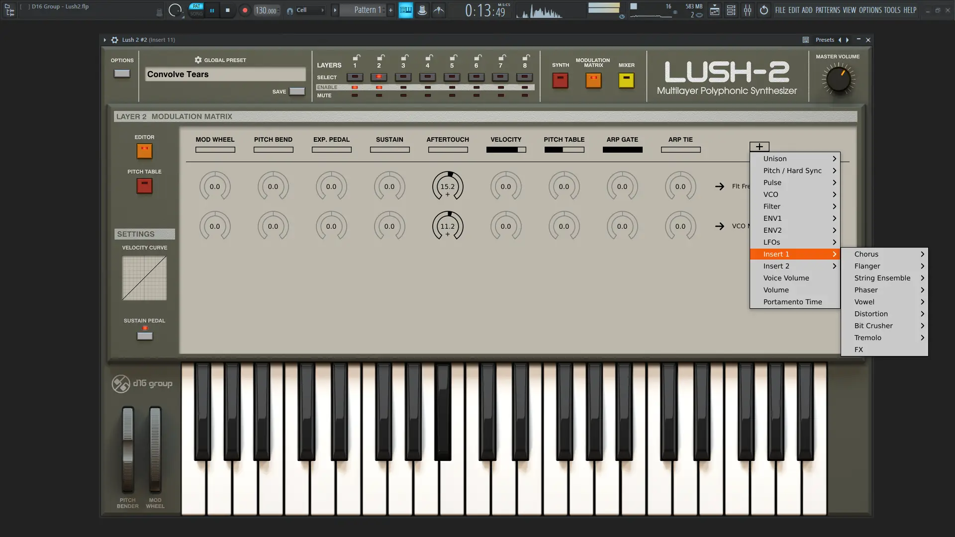 Гибкость Lush 2 проявляется не только в звуковых возможностях, но и в способности объединять слои в сложные, динамически изменяющиеся текстуры одной нажатой нотой.