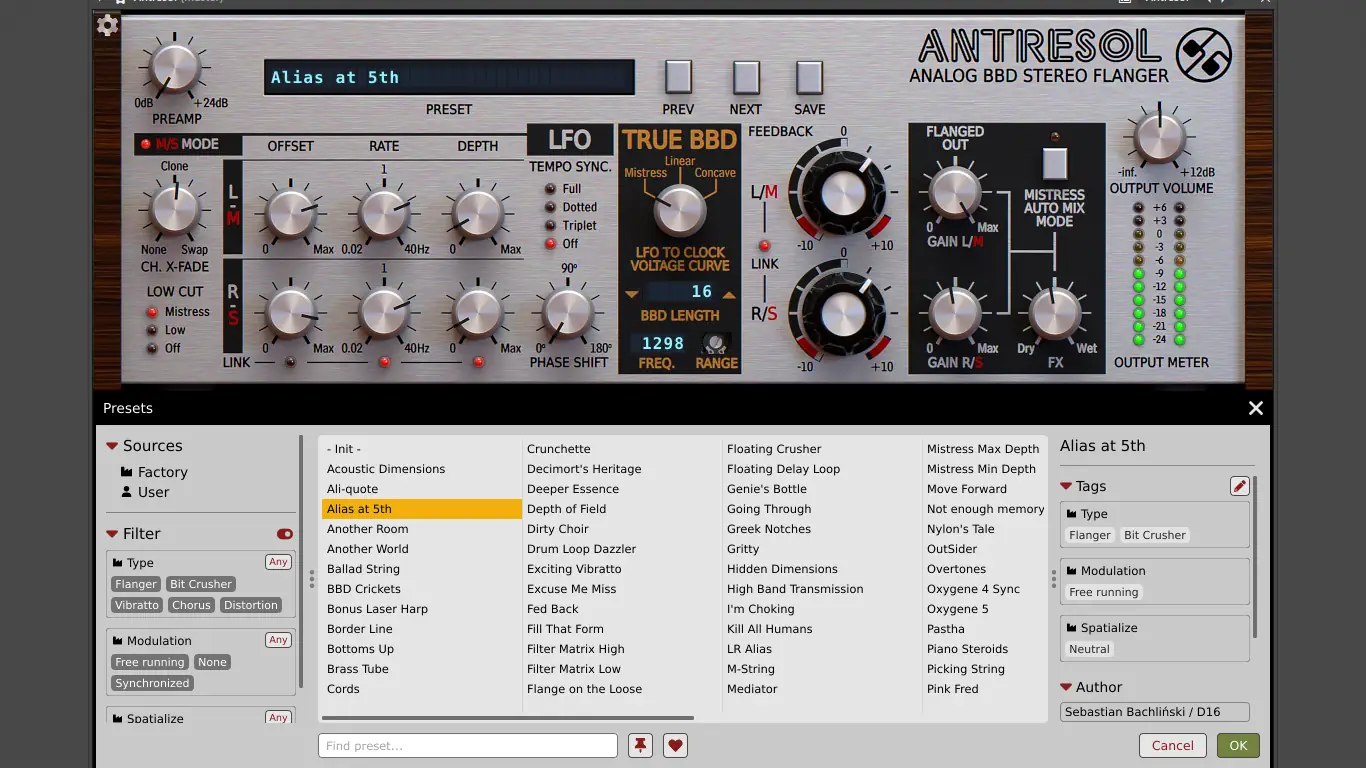 - Гибкая настройка параметров, включая управление фильтрацией, модуляцией и синхронизацией по темпу.
