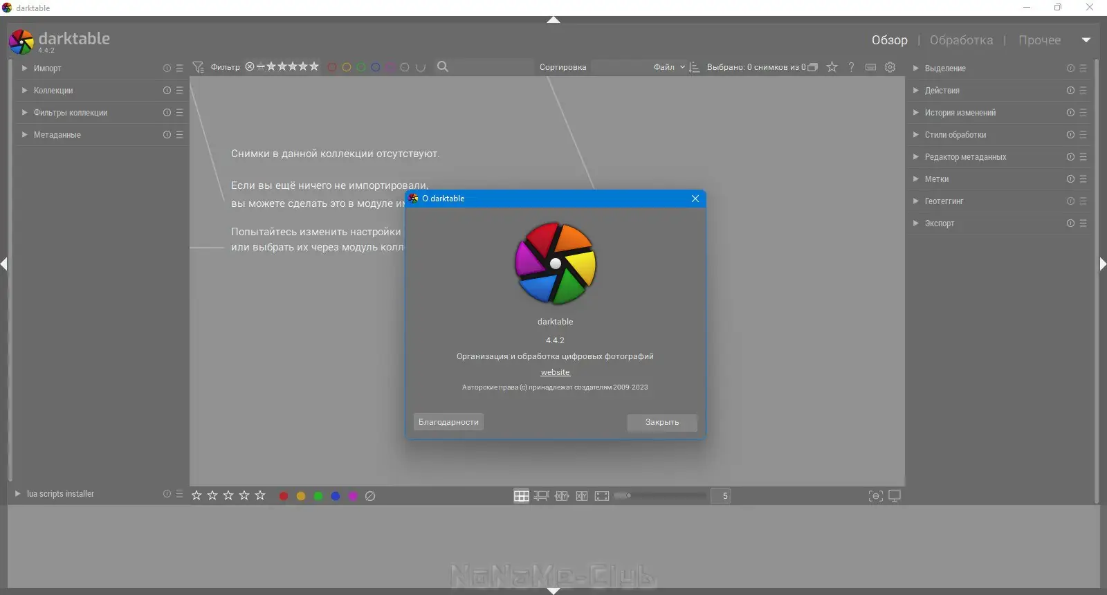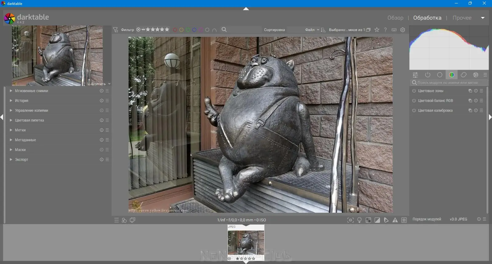 Darktable — это мощный фоторедактор с открытым исходным кодом, предназначенный для профессиональной обработки цифровых снимков, включая RAW-файлы. Программа объединяет функции каталогизации, редактирования и экспортных инструментов, обеспечивая полный контроль над рабочим процессом. Интерфейс оптимизирован для высокой производительности и удобства при работе с большими коллекциями изображений.