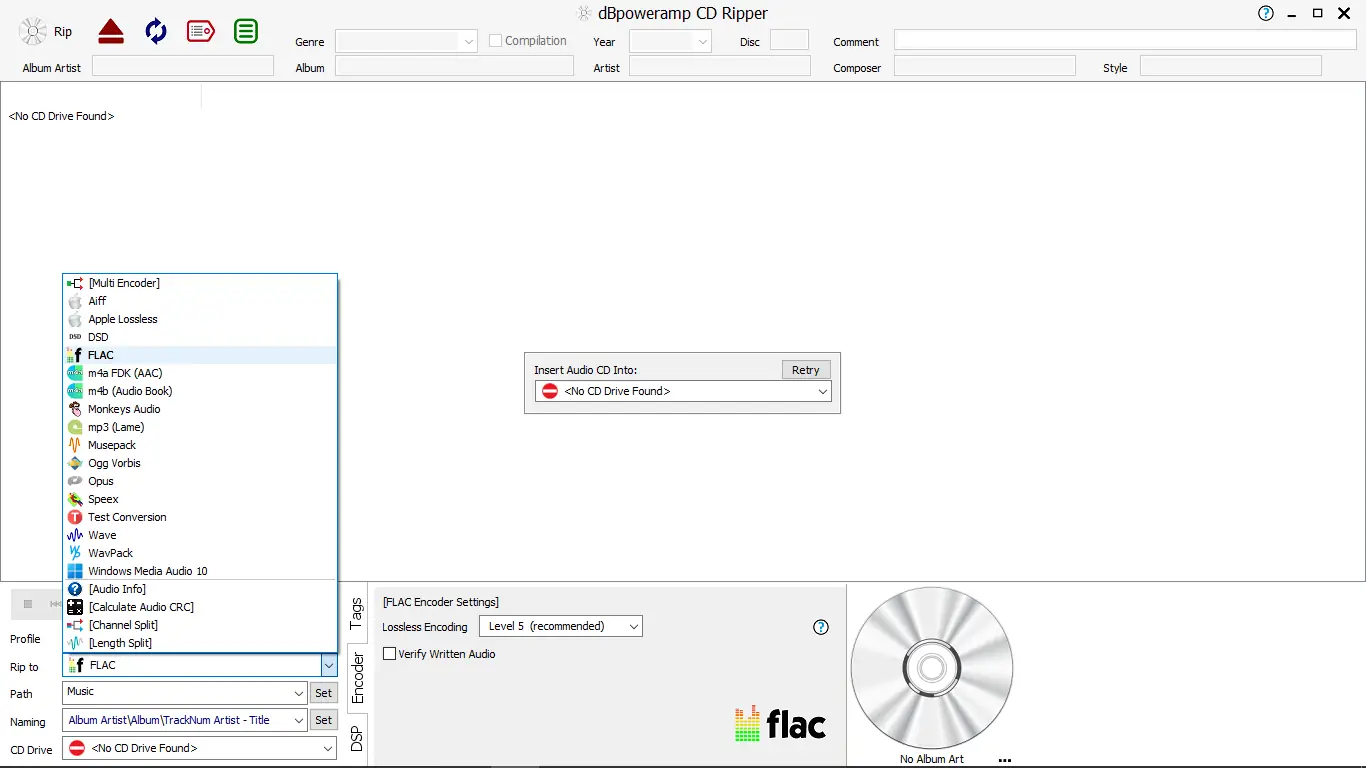 Преимущества dBpoweramp Music Converter очевидны при работе с аудио высокого разрешения и при необходимости сохранить максимальную детализацию звука. Программа стабильно работает с форматами, чувствительными к качеству перекодирования, и поддерживает lossless-конвертацию без потерь. В то же время, у решения есть и ограничения, которые стоит учитывать при выборе. Главное — это отсутствие встроенного проигрывателя и ограниченная настраиваемость интерфейса, что может смутить пользователей, ожидающих более современного дизайна.