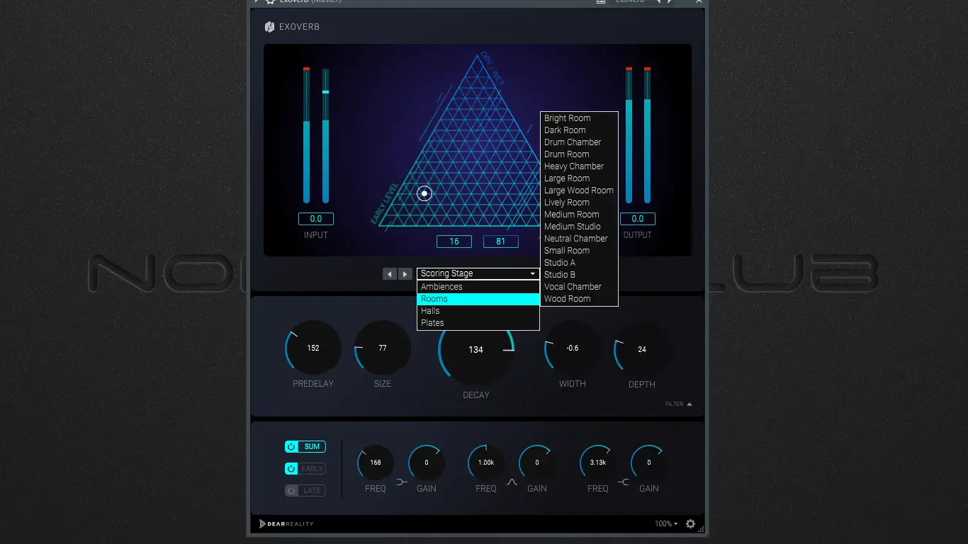 EXOVERB — это передовой плагин реверберации, разработанный компанией Dear Reality, который предлагает 50 реалистичных акустических сцен с выдающейся трёхмерной глубиной и шириной. Основанный на запатентованной технологии синтезированных пространственных импульсных откликов, он обеспечивает естественное звучание и высокую гибкость при микшировании. Интуитивное управление и продуманная архитектура делают его незаменимым инструментом для создания профессиональных стереомиксов.
